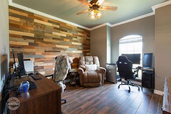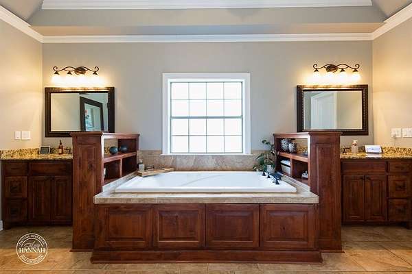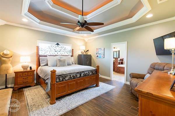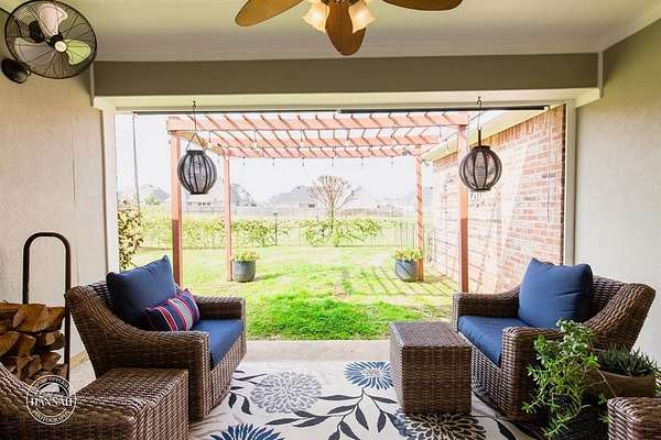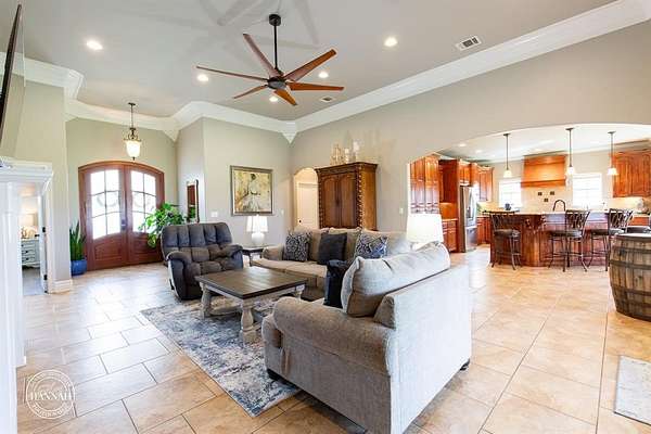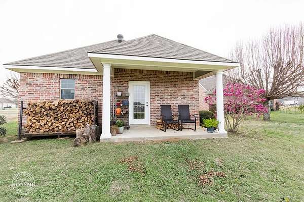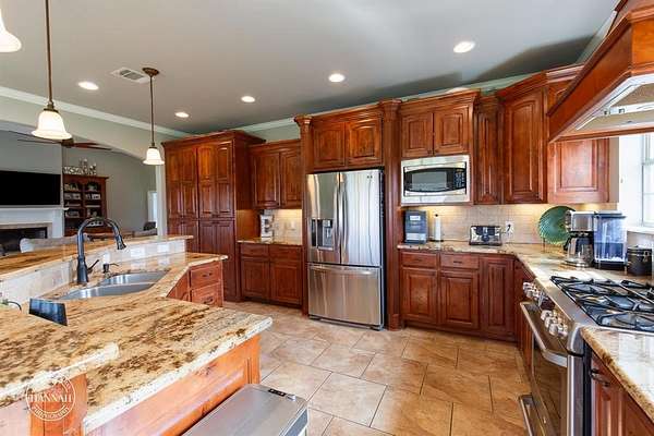 Stunning 4-bedroom, 3 full bath home located in the highly sought after The Hallmark neighborhood, in Stonewall. Situated on two lots totaling 1.7 acres in a quiet, one-street community, this property offers both privacy and space. Step inside to an open floor plan with soaring ceilings and exquisite attention to detail throughout. Beautiful trim work and custom cabinetry enhance every room, creating a warm and elegant atmosphere. The spacious living area features a cozy gas fireplace, while the kitchen is equipped with a gas stove and is perfect for entertaining. Enjoy endless hot water with two hot water heaters - no more cold showers! The home also includes hot and cold exterior water spigots for added convenience. The 2-car garage offers additional flex space, including a cubby man cave area. Outside, the beautifully landscaped yard is ready to burst with color in the spring, surrounded by mature trees and fruit trees including plum, peach, and apple. An additional 902 sq. ft. unfinished shop or apartment is already plumbed and wired, offering incredible potential for a guest suite, storage, workshop, or rental opportunity. For peace of mind, the home includes a fully monitored alarm and fire system, along with security cameras and a Ring doorbell. This exceptional property blends comfort, security, and future potential, all in one of the area's most desirable neighborhoods.
