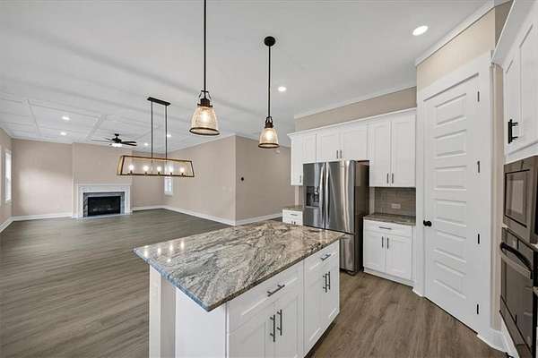 WINTER CLOSEOUT $25,000 IN SELLER CONCESSIONS FOR BUYERS TO USE AS THEY CHOOSE. Experience refined living at its finest in this stunning Ball Ground estate. Thoughtfully crafted with elegant details and modern sophistication, this home boasts an open-concept design with soaring ceilings, expansive windows, and designer finishes throughout. The chef's kitchen is a showpiece, featuring custom cabinetry, quartz countertops, premium appliances, and a grand island for both culinary creations and stylish entertaining. The owner's suite offers a private sanctuary with a spa-inspired bath, showcasing a soaking tub, walk-in shower, and dual vanities. Spacious secondary bedrooms and beautifully appointed bathrooms elevate everyday living. Outside, enjoy a meticulously landscaped yard, perfect for gatherings or peaceful relaxation. Conveniently located near the charm of historic downtown Ball Ground, this residence delivers luxury, comfort, and timeless appeal in one extraordinary setting.