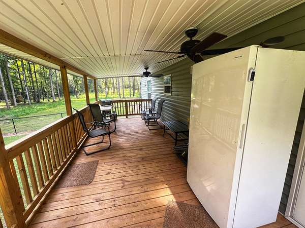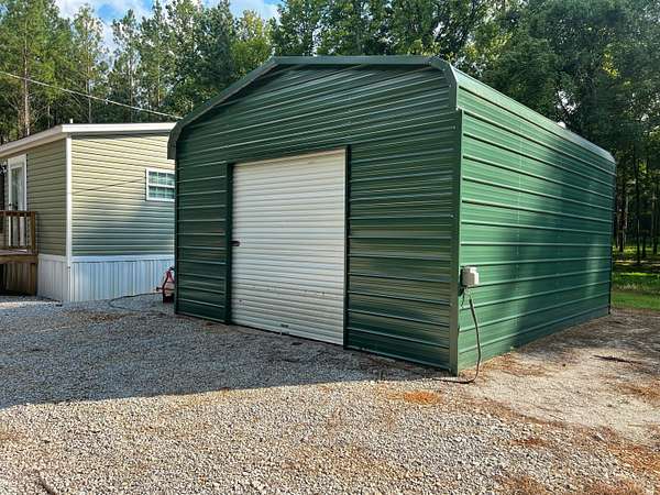 Motivated sellers are relocating due to health reasons- Don't miss out on this charming double-wide mobile home that exemplifies country living with peace and quiet! It sits upon 7.6 acres that has been under-brushed. An inviting open floor plan which includes two bedrooms, two full baths (the guest bath features a bathtub and shower) full kitchen, living room, and plenty of closet space. The kitchen offers authentic cabinetry and ample counter space for entertaining with appliances. You will surely enjoy time with family and friends in the living room where there is plenty of room for every day living! Vinyl ''hardwood'' flooring runs throughout - it feels rustic yet clean. This property is special as it allows you to enjoy the abundant wildlife from a covered back deck where there are two ceiling fans to keep you cool on hot, summer days. A portion of the backyard is enclosed with a black chain link fence with double gates. Also, a Guardian 22kw Generac Generator comes with the home and adjacent to the home is a prefab RG5Pro enclosed garage (gravel floor), measuring 18' x 20'. Schedule your showing, today!