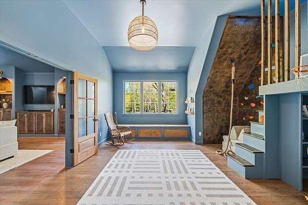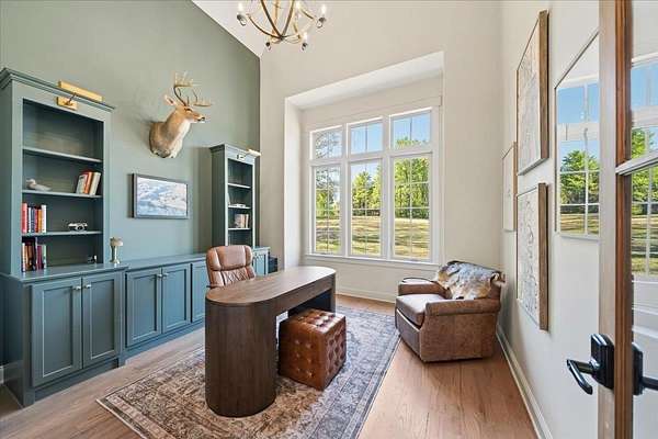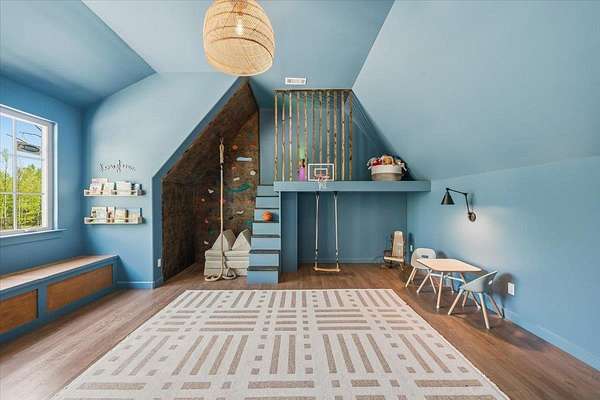 Set on 5 acres in Rossville, this 2023-built luxury home blends modern design with an outdoor lifestyle. Featuring 5 bedrooms, 4.5 bathrooms, a dedicated office, media room, and playroom, the open-concept floor plan is designed for both everyday living and entertaining. The great room and office showcase cathedral ceilings, creating volume and natural light throughout the main level. The primary suite offers close access to the laundry room for added convenience. Upstairs, two separate wings provide ideal functionality—Bedrooms 3 & 4 share a bath on one side, while the media room, playroom, Bedroom 5, and full bath occupy the other. The playroom features a climbing wall, loft, swing, and built-in storage. Outdoor living shines with a covered patio featuring a fireplace, outdoor kitchen, and TV. Chicago-brick steps lead to a firepit and expansive backyard. A detached barn provides space for equipment, RVs, boats, and more. Commonly seen wildlife include deer & turkey.