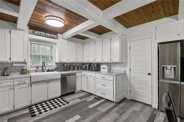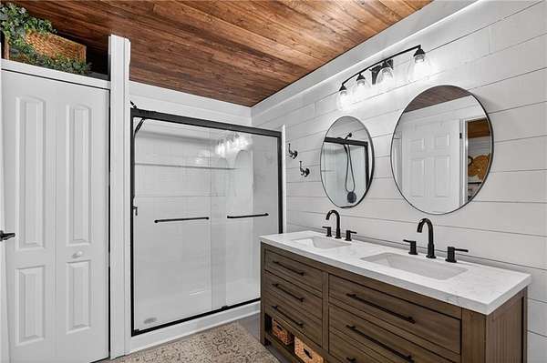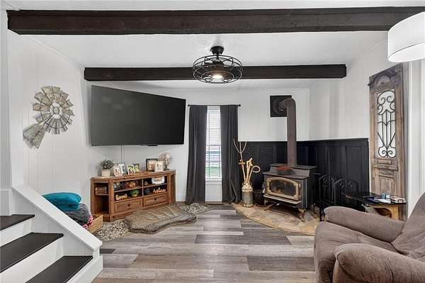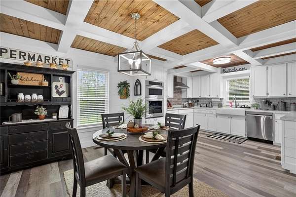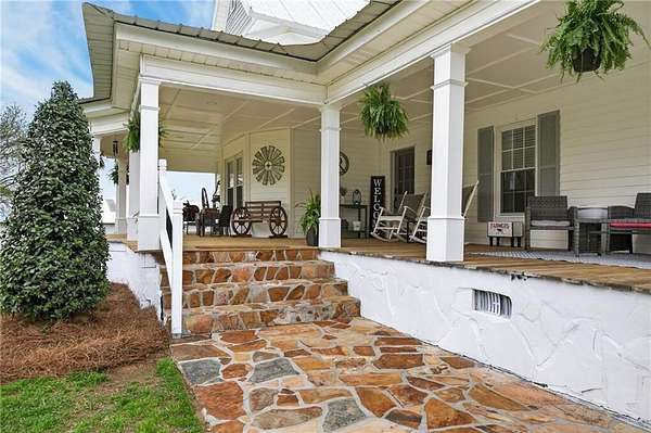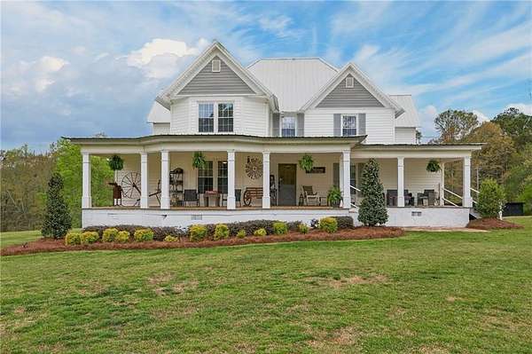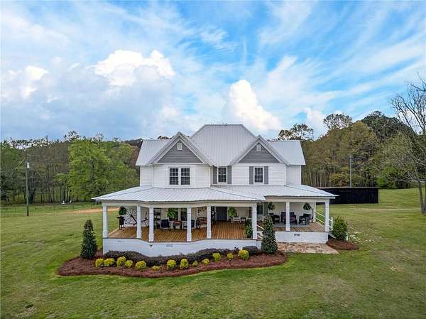 Charming Renovated 6-Bedroom Farmhouse on 16.56 Acres. Step into this beautifully updated 1940 farmhouse, where classic charm meets modern convenience. This spacious home offers 6 bedrooms, including 2 master suites on the main floor, each with a private bath. Upstairs, you'll find 4 additional bedrooms, one featuring its own private bath, along with a total of 4 full baths and 1 half bath. The heart of the home is a bright, inviting kitchen with white cabinets, new stainless steel appliances, a large farmhouse sink, and plenty of space for family gatherings. A sunroom off the kitchen brings in natural light, while a main-level laundry room adds convenience. Recent updates include new flooring throughout, including carpet and hardwood, new subflooring, new doors, a new water heater, and a metal roof for peace of mind. Step outside to enjoy the new front porch with rocking chairs, a covered back porch with additional open deck, and the serene 16.56-acre setting with fenced pastures. Equestrian enthusiasts will love the barn with stalls and a multi-level loading area, perfect for horses or other livestock. The property also boasts new landscaping, making this fully renovated and updated farmhouse move-in ready. Experience the perfect blend of country serenity and modern comfort in this exceptional home. If you want, I can also create a short, punchy version that's perfect for online listings or social media, highlighting the most eye-catching features. Do you want me to do that?