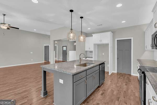Welcome to 3590 Tommy Lee Cook Road. Nestled on 2.51 beautiful acres, this meticulously maintained ranch home offers the perfect blend of comfort, space, and thoughtful upgrades throughout. Featuring 4 spacious bedrooms plus a versatile bonus room and 3 full bathrooms, this home boasts an open-concept floor plan designed for both everyday living and effortless entertaining. The heart of the home is the stunning kitchen with a large island - perfect for gathering - alongside a walk-in pantry, ample cabinetry, and a seamless flow into the living area flanked by a beautiful gas brick fireplace. You'll love the abundance of storage options, a dedicated laundry room, and the convenience of a 2-car garage. Step outside to enjoy a fenced backyard with additional property beyond the fence line, offering even more room to roam, garden, or expand. Easy to keep the yard looking good with the inground irrigation system. Speaking of gardening - the established garden area comes complete with rich, quality soil ready for your next harvest. This property offers the peace of country living with the space you've been dreaming of, all while being conveniently located near everything Newnan has to offer. Better than new and truly move-in ready - this one is a must-see! Welcome to your new home.