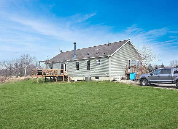 This beautiful country home sits on 5.7 acres of picturesque land, offering a rare combination of spaciousness, comfort, and functional living. The residence features 3 main bedrooms and the potential for 2 additional bedrooms in the basement, providing flexible space for family or guests. The main level includes two full bathrooms and generous bedrooms with large closets, ensuring comfort and convenience. Discover this one-of-a-kind home, perfectly situated on a stunning 5.7-acre wooded lot, where you can enjoy the beauty of nature and the wildlife around you-what a rare gem! This home also comes with a Generac and water softening system!! The inviting living room boasts a cozy wood fireplace and large windows that frame stunning views of the expansive yard. Step outside onto the 12' x 16' deck, accessible from entry doors in the living area, perfect for outdoor enjoying or entertaining. The kitchen is thoughtfully designed with two dining areasone cozy nook and a more formal spacemaking mealtime gatherings a pleasure. The well-maintained driveway and manicured land feature trails, a hunting blind, and a spacious 36' x 48' pole barn. The barn serves as an excellent workshop or storage area, equipped with a main door, two side garage doors, and a convenient man door. This property combines peaceful country living with easy access to shopping and amenities, making it a truly exceptional place to call home. Significant updates have been made to the home from 2023 on!