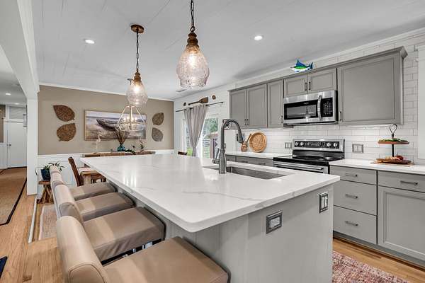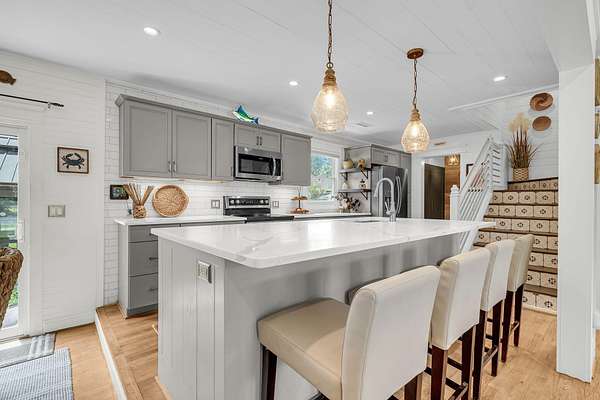 Welcome to 3591 Bayou Road, where the magic of waterfront living meets the income-generating potential of a short-term rental-qualified ADU, and your own private boat ramp invites you to slip into the Lowcountry's scenic tidal waterways with ease.The property includes not only a beautifully maintained Johns Island residence but also a rare offering: a private 1.78-acre island retreat with an additional 3.3 acres of marshland. This island sanctuary is the crown jewel, a place where you can cast a line for redfish, drop a crab trap, or simply watch pelicans, seagulls, and dolphins at play from your deepwater dock. Evenings bring unforgettable sunsets and the slow passage of yachts drifting by, best enjoyed with your favorite cocktail in hand.Whether it is quiet reflection, outdoor adventures, or unforgettable gatherings under the stars, this island delivers a true escape. Back on the mainland side, the charming four-bedroom home has been lovingly cared for and thoughtfully refreshed. Step inside to discover rich hardwood floors paired with classic shiplap walls. The heart of the home is a spacious, light-filled kitchen that serves as both a gathering space and a gourmet workspace, complete with a large quartz-topped island, stainless steel appliances, and a built-in wine fridge. The primary bathroom has been reimagined into a spa-like haven, with a jetted soaking tub, tiled walk-in shower, and elegant fixtures that invite you to slow down and unwind. Outside the residence, the setting unfolds into lush grounds brimming with edible landscaping: olive, orange, lemon, pecan, and apple trees, plus blueberries, blackberries, raspberries, herbs, and vegetables, all perfect for a farm-to-table lifestyle. A detached shed provides space for gardening, hobbies, or extra storage, while porches and a tucked-away gazebo invite you to linger in the gentle salt air. The detached Accessory Dwelling Unit (ADU) adds even more flexibility to the property, ideal as an in-law suite, private home office, gym, or fully legal short-term rental to generate year-round income. This property offers a lifestyle like no other: a peaceful Johns Island retreat with both a character-rich main home and a private island sanctuary. Located just a short drive from Charleston's best dining, shopping, and entertainment, it delivers a rare opportunity to live, relax, and invest in one extraordinary location.