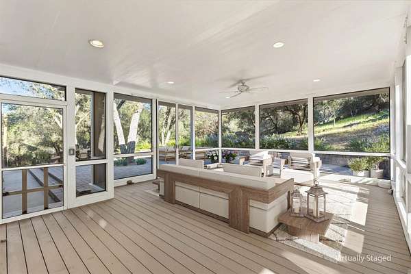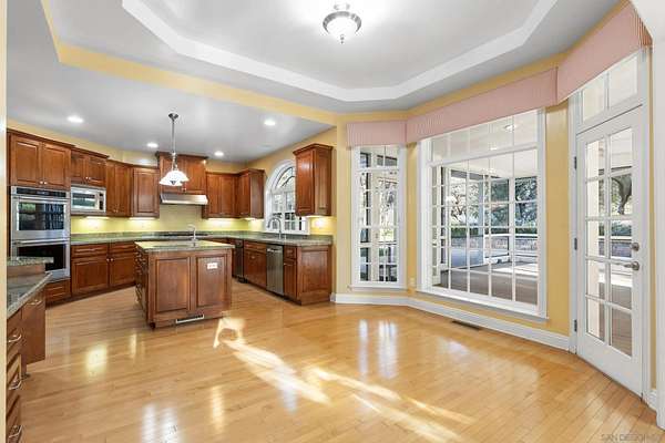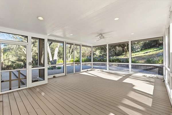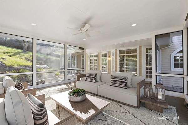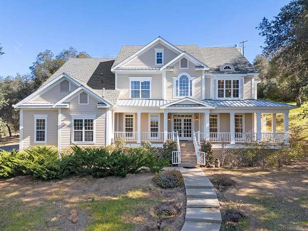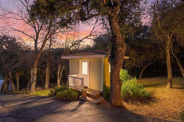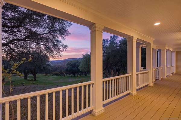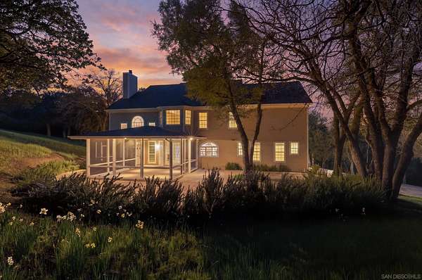 Escape to a private mountain sanctuary in Julian's sought after Pine Hills community, where fresh air and star filled skies define everyday living. Set on nearly five acres just minutes from historic Julian, this exceptional estate offers peaceful seclusion with modern comfort. Built in 2003 with timeless Early American character, the home welcomes you along a long private driveway to a charming wraparound covered porch and grand light filled entry. Thoughtful exterior lighting creates a warm ambiance perfect for enjoying summer evenings outdoors. High ceilings, maple flooring, detailed moldings, and expansive windows create warm interiors that connect beautifully to the surrounding landscape. The spacious kitchen features a five burner gas range, walk in pantry, and large center island with secondary sink, opening to the inviting family room with wood burning fireplace and custom built ins. French doors lead to a screened California room and paver patio, creating seamless indoor outdoor living. All five bedrooms are private en-suites with walk in closets, including a main level guest suite. The primary retreat offers a sitting room, dual walk in closets, separate vanities, soaking tub, and Italian-style walk in shower. The property includes a well with 10,000 gallon holding tank, reverse osmosis filtration system, generator, FloLogic leak detection system, four outbuildings including a potter's studio, and a three car garage. Close to William Heise County Park and minutes to Historic Julian shops and restaurants.