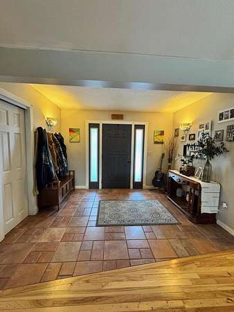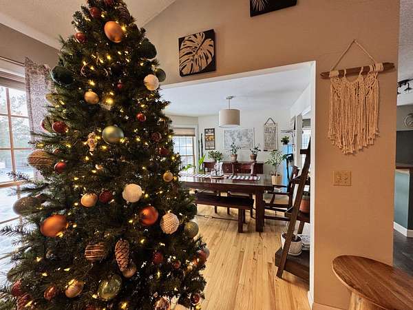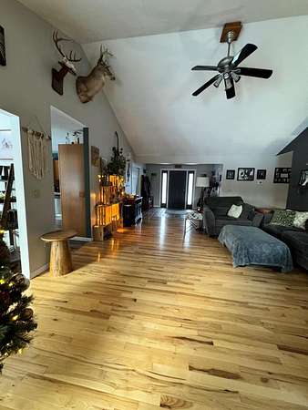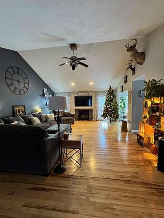 Discover your private oasis just outside the city limits. This beautiful ranch-style home offers the perfect blend of comfortable living, modern upgrades, and peaceful outdoor space. Step inside and be greeted by stunning hickory wood floors that flow throughout the open-concept living areas, living room features: vaulted ceilings and a cozy gas fireplace perfect for chilly evenings. This thoughtfully designed home features 3 bedrooms and 2.5 bathrooms across a flowing single level. Cook and entertain in the kitchen with updated appliances, double ovens, and ample cabinet space. Master Suite: Retreat to your private master suite, which boasts, vaulted ceilings, walk in closet and private bath. Enjoy two acres of land, featuring a privacy-fenced backyard ideal for pets or play.