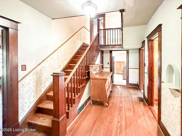 STOP Right HERE! Magnificent Traditional Farmhouse Style Home with Loads of Character! This Home Features a Formal Living Rm, a Beautiful Foyer Area, 1st Floor Primary Bedroom & Bath, Spacious Kitchen with Pantry, Formal Dining Rm, Half Bath & 1st Floor Laundry. The 2nd floor features 3 Additional Large Bedrooms, a 2nd Full Bath (in need of renovation) a 2nd Floor Foyer Area and a partially Finished Attic Area. Exterior Features include a Large 2 Car Detached Garage with 2nd Floor Apartment Area, a Building previously used as a smokehouse, a Large Storage Building for your hobbies, a Large Deck Area, a Beautiful Covered Front Porch Area and lots of Beautiful Mature Trees. All situated just 2 miles South of I-64 Exit 43 in Beautiful Country Setting. Call NOW for your Private Viewing!