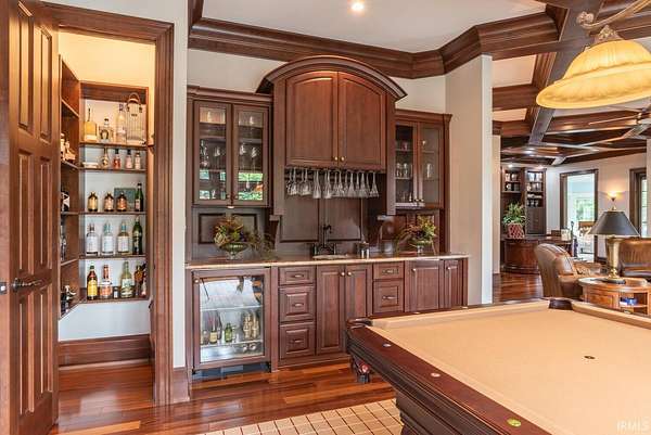 - 1 st Bedroom En Suite, Breakfast Bar, Built-In Bookcase, Closet(s) Walk-In, Dishwasher, Eat-In Kitchen, Formal Dining Room, Kitchen Island, Main Floor Laundry, Main Level Bedroom Suite, Pantry-Walk in, Pool Equipment, Refrigerator, Split BR Floor Plan, Wine Chiller
