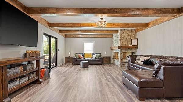 Walk Into Perfection On This 4.95 Acre Property!! Set Up for an Airbnb or Could Be The Most Fabulous Family Home. From the Covered Front Porch, Walk Into The Open Concept Living Area. The Custom Kitchen Cabinets are Made Of Knotty Alder, With a Pantry, Granite Countertops, L Shape Island with Ample Seating and All Appliances Are Included. The Living Room Has An Abundance Of Natural Light And a Corner Fireplace. All Three Bedrooms are Spacious and The 3.5 Baths Are Beautiful. Bonus Room on The Back Of The House Could Be A Game Room, Kids Play Room, or Whatever You Can Dream Up. All New Wiring, Plumbing, HVAC, and Roof. The Outdoor Area Is Stamped Concrete with a Fireplace, Plenty Of Seating, and Outdoor Cooking Area. Stamped Concrete and Stone Walkways Lead You Around The Home. Located Next to Ray Rocks Offroad Resort.