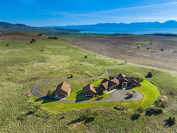 Exquisite custom craftsmanship meets spectacular Mission Mountain and Flathead Lake views at this 4BD/4BA 4,941 SF home on 10.03 acres. With a main level primary suite, this home showcases a gorgeous fusion of woodwork and upscale finishes, which include natural hickory wood and travertine tile floor, hand-picked Chief Cliff Rock on both interior fire places and exterior columns, knotty alder doors & trim, granite countertops, T&G pine ceiling, lower-level in-floor radiant heat, and handblown glass lighting from Hubbardton Forge. Step outside the main level to the covered deck, or the lower-level walkout to the covered patio for endless entertainment possibilities. Walk through the covered breezeway to access the 30x24 heated shop, while a 30x40 barn, added in 2020, further enhances the property's functionality. Flathead Lake recreation and amenities are just minutes away! See Feature Sheet in docs.