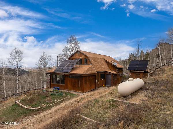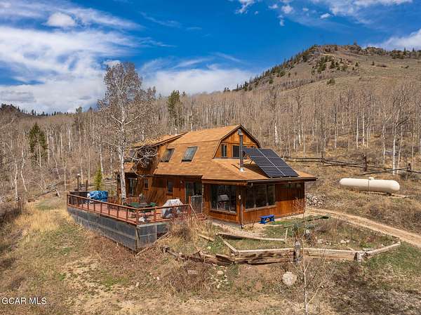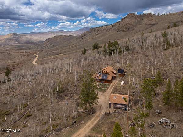 This is one of those properties that is hard to explain until you stand there and realize what it actually is. The setting is beautiful, yes, but the real story is the land. With 25.77 acres and direct access to 1,567 acres of BLM that is landlocked by surrounding private property, this property lives bigger than its acreage. It gives you room to breathe, room to roam, and a level of privacy that is getting harder and harder to find. The home itself has been very thoughtfully updated and well cared for. It offers 3 bedrooms and 2 bathrooms, with a fully remodeled kitchen, Brazilian granite countertops, new flooring, and new tiled showers. The large windows face the Arapaho National Forest and bring in big views, along with both sunrise and sunset. There is a large deck stretching across the front of the home, which is exactly where you will want to be. The layout is practical too, with two bedrooms, one bathroom, and the laundry upstairs, while the large primary bedroom, bathroom, kitchen, dining area, and living room are all on the main level. This property was clearly set up by someone who put real thought into how mountain living actually works. The solar system is owned, not leased, and includes a 48-volt setup with 16 batteries through Solar Bear out of Grand Lake. There is also a backup generator already hooked up. A 1,000-gallon propane tank, oversized septic design, fenced dog yard, buckrail fencing to keep the local cows back, and fire mitigation around the home all add to the functionality and peace of mind. The 24 x 24 shop is another major asset, with a concrete floor, insulated walls, a large door, built-in countertops, and storage. Whether you need space for projects, equipment, or just extra room to work, it is a great setup. And then there is the location. Just a few miles outside of Hot Sulphur Springs on County Road 55, also known as Cottonwood Pass, this area is highly sought after for good reason. In the summer, you can take the road straight through to Highway 40 north of Granby. It feels private and tucked away, but it is still connected.