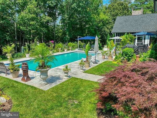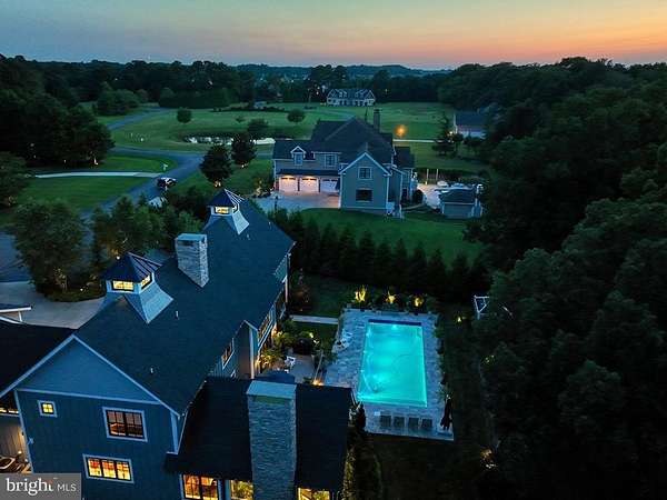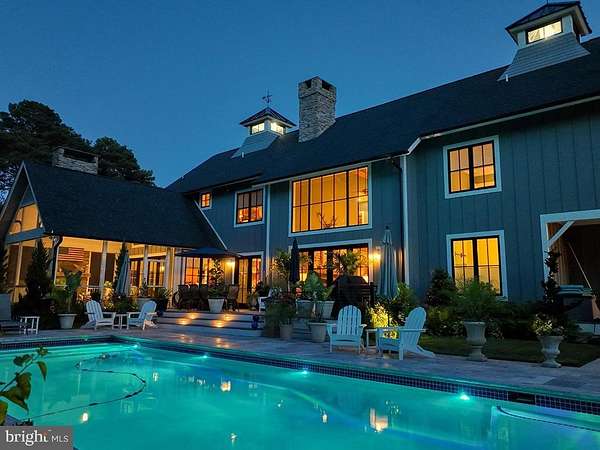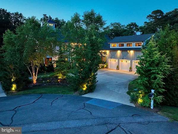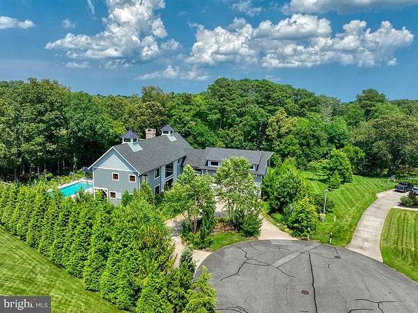 ARCHITECTURAL ARTISTRY MEETS COASTAL TRANQUILITY in THE NEST - a private, gated enclave within the highly sought-after Hawkseye Community. Experience the pinnacle of coastal living from this stunning residence that's an architectural masterpiece, where contemporary farmhouse aesthetics converge with high-design luxury. From the sweeping circular drive, to the soaring silhouette, the home makes a monumental first impression. Step through grand double doors into a breathtaking two-story great room where floor-to-ceiling windows invites the outdoors in, anchored by a magnificent two-sided stone fireplace that leads to a sophisticated formal dining room. This is a masterclass in scale and craftsmanship, offering a seamless flow designed for both grand-scale entertaining and intimate relaxation. The culinary center is a true showstopper, featuring professional-grade Thermador appliances, including a six-burner gas cooktop, four wall ovens, dual warming drawers, and dual dishwashers, complemented by oversized refrigerator, a wine fridge, and expansive quartz countertops. The main-level primary sanctuary offers ultimate seclusion, complete with a custom-designed dressing suite, spa-inspired ensuite bath, and private laundry. An industrial custom staircase leads to the upper level, where a magnificent suspended walkway bridges two distinct wings. This floor hosts three generous guest suites, a private executive office, and an expansive family lounge with a gas fireplace that easily serves as a fifth bedroom. The resort-style exterior delivers an unparalleled outdoor oasis, featuring a screened porch with a stone fireplace, an expansive designer patio, and a heated in-ground pool equipped with Smart Pool Automation. The two-acre grounds are professionally landscaped for total privacy and supported by a private well for cost-effective irrigation. Additional highlights include a three-car garage, a four-zone HVAC system, and a massive unfinished basement with plumbing rough-ins ready for future expansion. Located steps from the Junction-Breakwater Trail and minutes from Cape Henlopen State Park and downtown Lewes, this property offers the best of the Delaware coast. Make 2026 the year you make this coastal oasis yours!