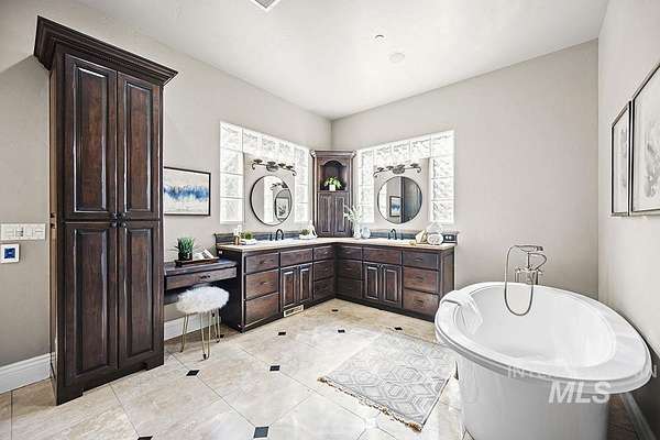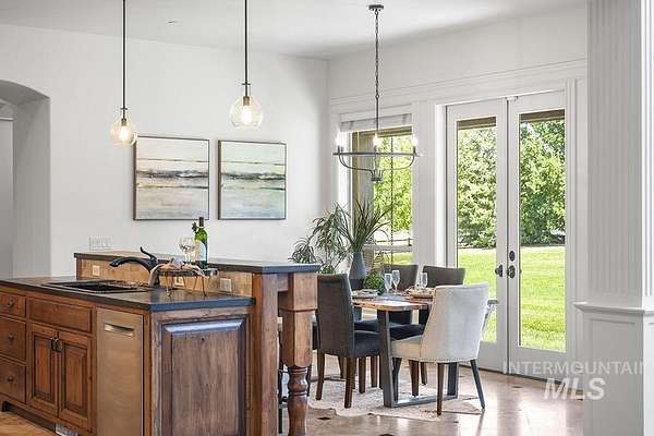 At the end of a quiet cul-de-sac, this Eagle acreage estate offers a rare blend of lifestyle & investment: a grand & spacious residence paired with a thriving truffle orchard of 250+ trees. Planted in 2019, the orchard is approaching production, with the potential for significant annual income & the unique joy of truffle farming - a pursuit long celebrated in Europe. Imagine hosting your own "truffle hunt," followed by elegant dinner on the terrace overlooking your land. The 6,450 SF home is rich in rustic-European character, featuring arched double doors, a two-story great room with stone fireplace, and walls of windows framing the grounds. Multiple patios, porches, and an elevated terrace create seamless indoor-outdoor living, while an attached, finished space offers versatility for entertaining, ADU, creative studio, or business headquarters. With spacious suites, main-level primary, a bonus room, and flexible quarters connected by breezeway, this property provides unmatched potential & opportunity.