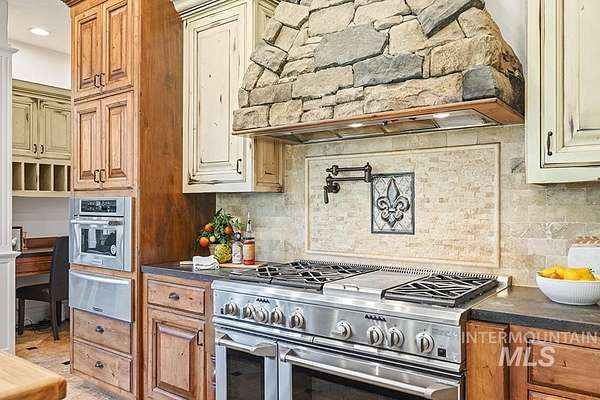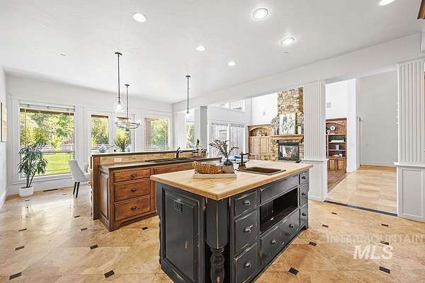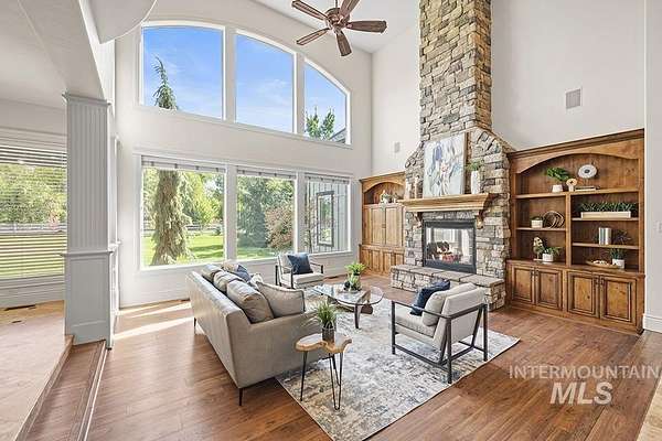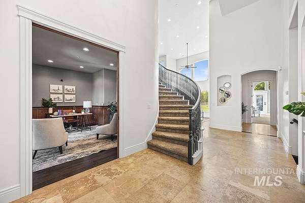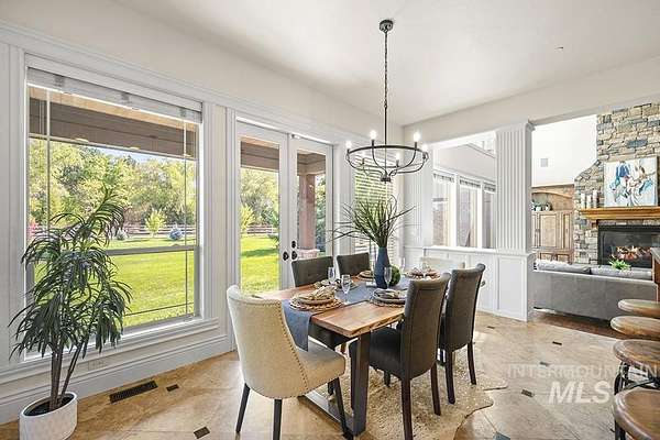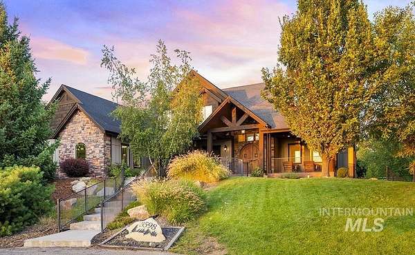 At the end of a quiet cul-de-sac, this Eagle acreage estate offers a rare blend of lifestyle & investment: a grand & spacious residence paired with a thriving truffle orchard of 250+ trees. Planted in 2019, the orchard is approaching production, with the potential for significant annual income & the unique joy of truffle farming - a pursuit long celebrated in Europe. Imagine hosting your own "truffle hunt," followed by elegant dinner on the terrace overlooking your land. The 6,450 SF home is rich in rustic-European character, featuring arched double doors, a two-story great room with stone fireplace, and walls of windows framing the grounds. Multiple patios, porches, and an elevated terrace create seamless indoor-outdoor living, while an attached, finished space offers versatility for entertaining, ADU, creative studio, or business headquarters. With spacious suites, main-level primary, a bonus room, and flexible quarters connected by breezeway, this property provides unmatched potential & opportunity.