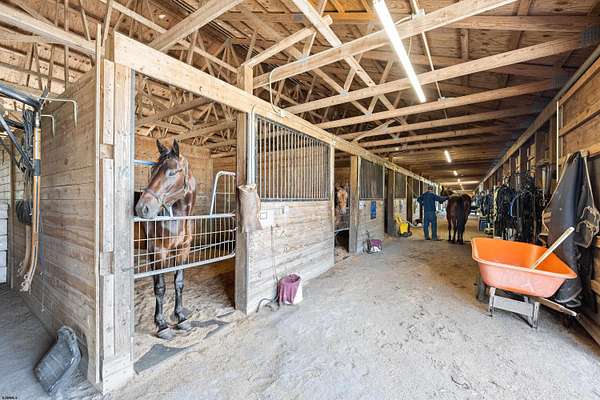 Burlington County is in the South Jersey region and is the largest county by area. Winners Training Center is located in Chesterfield Township. WELCOME TO WINNERS TRANING CENTER. Getting there is half the fun. Surrounded by serene agricultural fields, and pristine winding roads present a vacation feel to arrive at the main entrance of the horse farm. The open area is welcoming especially from the top of the rolling hill above the picturesque fields dotted with buildings housing the horses. This 196 acres + landmark equestrian property is a turnkey, income producing farm with unlimited potential. Boasting 8 barns accommodating 208 stalls, 5/8 mile stone dust surface racetrack standardbred training center, 6 run-in-sheds allowing the horses to run in and out. Also of interest is the swimming pool where horses use a ramp down to the pool. There are 30 horse paddocks around the property. There are also 5 bay shops in a building with 5 sections. . Winners Farm is not only the name of the property, it's a winning investment. There are 24 equipment of value including multiple tractors, lawn mowers, loader, water trucks, dump trucks, pickup truck, field mowers, track scraper and other useful equipment. Please see the full list in Associated docs. VIEW FULL VIDEO HERE: https://vimeo.com/830056388