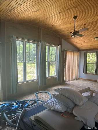 BIG TREES, TRACKS AND TRAILS .. lead to this wildlife laden 26 Acres perimeter fenced with old trees, old pasture, fenced all the way around pretty and pretty home, shop/garage, barn & swimming pool. There is a present you can open by bring this beautiful land back to a playground for you and the animals. This modified home has beautiful wood cabinets, all floor surfaces in the home are wood or hard surfaces stunning cove ceilings with wood treatments, upstairs bedroom with a possible 2 beds on main level. The enclosed front porch has a wood stove for an enchanting evening, the back enclosed patio has windows overlooking the barn and swimming pool. Lets not forget the cabin in the woods too. This special property is located by 1000's of acres of Mark Twain Forest, USA Forest, Conversation Land, The Huzzah crystal clear creek for great fishing, Shoal Creek meanders around there too. But why leave this paradise to fight for a hunting spot or campout. You have your own private property to do that on.