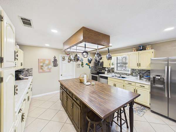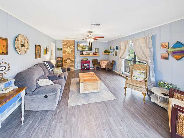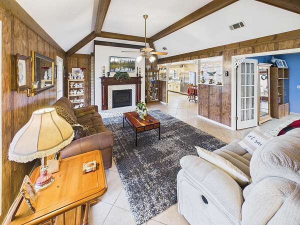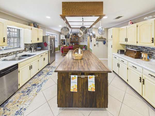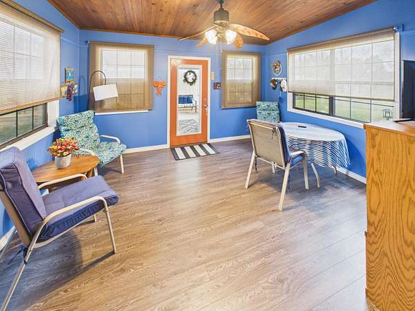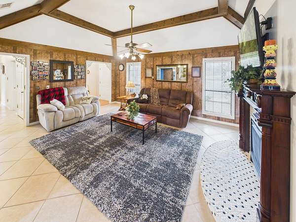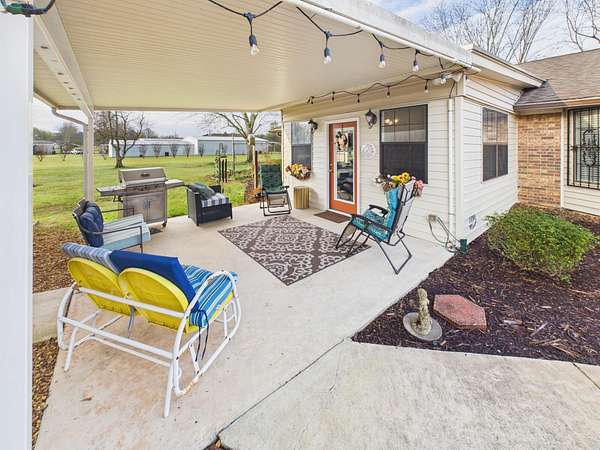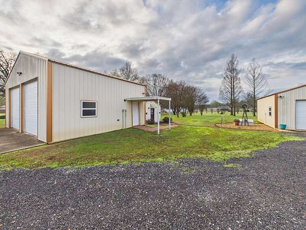 Situated on a beautiful 2-acre lot shaded with mature pecan trees, this immaculately maintained home offers space, comfort, and versatility. The property features two large shops--one currently used as a garage and the other perfect for additional cars, recreational vehicles, or extra workspace--along with an additional storage building ideal for storing seasonal items such as holiday decoration Inside, the home has been thoughtfully cared for and offers inviting living spaces. The former garage has been enclosed, creating a comfortable sitting room/den that provides extra space for relaxing or entertaining. The kitchen is open and spacious, offering plenty of room for cooking and gathering with family and friends. One of the highlights of the home is the sunroom, where added insulation and beautiful tongue-and-groove ceiling boards create a warm and welcoming space. With its own gas heater, this room stays cozy year-round and is the perfect place to relax and enjoy the view of the property. This well-cared-for, move-in-ready home reflects pride of ownership throughout. Don't miss your opportunity to see this wonderful property in person!