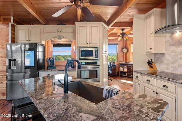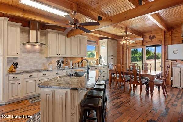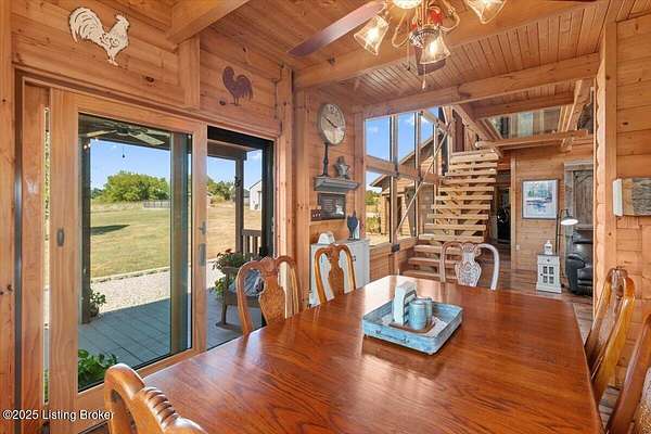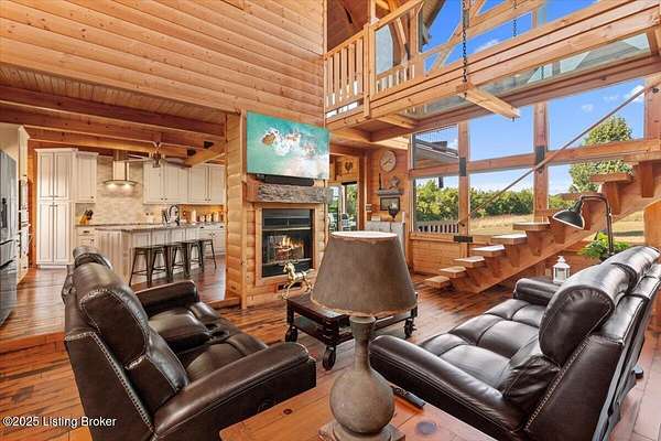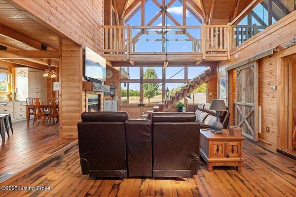Here is the one!! The epitome of luxury meets country living!! This home has an impressive build history and a complete list of upgrades (please see attached documents for further information) and was also featured on HGTV's show Log Cabin Living. Welcome home to your own private oasis situated on 7.5 acres. This home is almost too stunning to describe in words and has been meticulously maintained and updated. The home is an Amish built 2 Story home with an open concept. The views from this property are breathtaking with 270o territorial views from every room with an abundance of natural light throughout. Imagine relaxing around the fireplace glow watching the snow fall in the Winter! Imagine hardwood floors, cedar lined closets and an induction stove. The spacious eat-in kitchen and two full bathrooms have been completely updated recently along with newer flooring throughout the main level. The kitchen offers plenty of storage with extra deep cabinets and Granite countertops. There is an additional breakfast nook/office nestled off of the kitchen!! The main level provides a bedroom and full bath. The primary suite located on the second floor provides privacy and comfort with a private covered balcony and will make you feel like you are on vacation every day. The primary bath is sure to impress with dual sinks, a large soaking tub and radiant heated tile flooring. There is an additional open concept 3rd Bedroom and a full bath with a stand up shower on the second floor. Some other nice additions to this one of a kind property include a 3 way filtered water system, Fiber Optic Cable, an attached 2 car garage with storage space galore, newer garage doors and a 5x10 underground storm shelter, a 24x40 detached 3 car garage and a 24x30 barn. You will love the hardwood floors, Beauty boasts at every single corner of this home. Come see it today and let us lead you home!!!