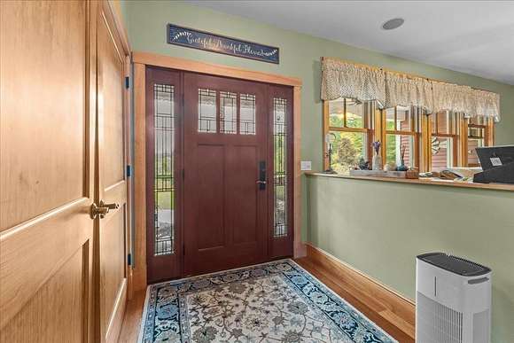 Welcome to your dream home! Nestled on 36.6 acres of private, picturesque land in Jericho, this stunning one-level residence offers the perfect blend of luxury, comfort & functionality. As you enter through the front covered porch, you'll step into the great room, highlighted by a dbl-sided gas fireplace & 9-foot ceilings. The gourmet kitchen features a granite island w/ a dbl oven, dbl dishwasher, gas cooktop & custom Simpson cabinetry w/ under-cabinet lighting. A formal dining room provides the perfect setting for entertaining & offers direct access to an outdoor deck. The primary bedroom suite is complete w/ a walk-in closet & a private bath, which boasts a Jacuzzi tub, stand-up shower & dual vanities. Off the 3-car garage, you'll find a spacious mudroom a 1/2 bath w/ laundry along w/ 2 additional generously sized bedrooms, another full bath w/ dual vanities & a bonus room/office. The full walk-out basement is partially finished offering potential for additional living or entertainment space. Energy efficiency abounds w/ owned solar panels, radiant floor heat in the kitchen & entry & a propane boiler w/ the option to switch to an outdoor wood boiler. For all your storage needs, a large 32x40 detached 2-bay garage, complete w/ a 32x38 addition, offers ample space for vehicles & equipment w/ the potential to finish the 2nd level. Located on a private road, this exceptional property offers tranquility & seclusion while being just a short drive to I-89 & nearby amenities!