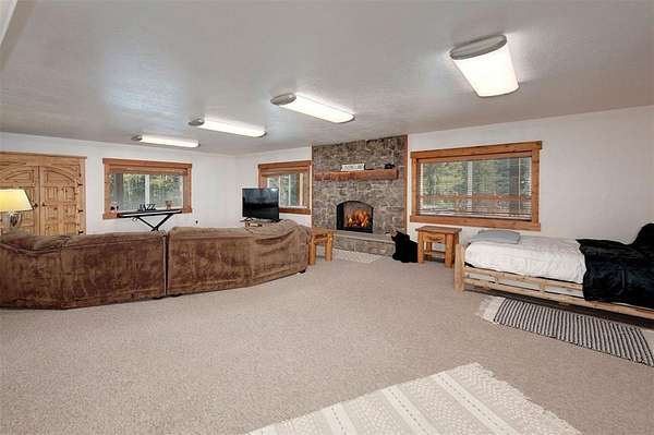 Set on 10 private acres in the sought-after high alpine Valley of the Sun subdivision, Moose Valley Lodge offers a rare combination of seclusion, scale, and proven income potential. Surrounded by treed meadows and expansive mountain views, this property functions equally well as a luxury mountain retreat, an established short-term rental, or a turnkey venue for large gatherings and events. Annual rental revenues regularly gross over $100,000. Designed for hosting, the home features multiple living and dining areas, a spacious kitchen with stainless steel appliances, and seamless indoor-outdoor flow to expansive, low-maintenance Trex decking. Vaulted tongue-and-groove ceilings, stone fireplaces and unique design elements create a warm and inviting atmosphere throughout. The main level includes a large primary suite with fireplace and five-piece bath, jetted tub and walk in closet. There are two additional bedrooms and a flex room on the main level sharing a full bath. The lower level offers a recreation room, private bedroom and full bath, indoor sauna, and walk-out access to backyard amenities. Outdoor highlights include a seasonal pond, hot tub, zip-line, and a rare flat paved driveway. Two laundry areas, radiant in floor heat (including the garage) and a workshop add comfort and functionality. Located minutes from downtown Fairplay and approximately 35 minutes to Breckenridge, this property offers a wonderful private mountain setting with convenient access to world-class recreation.