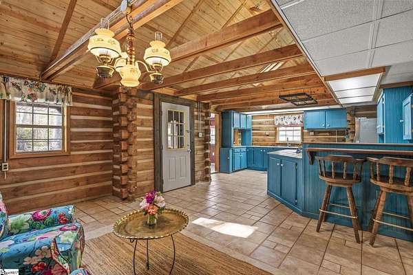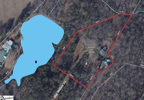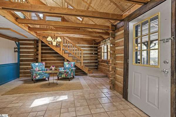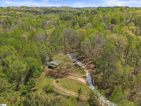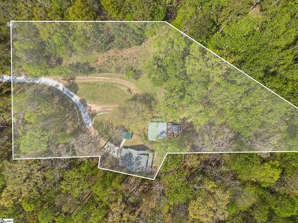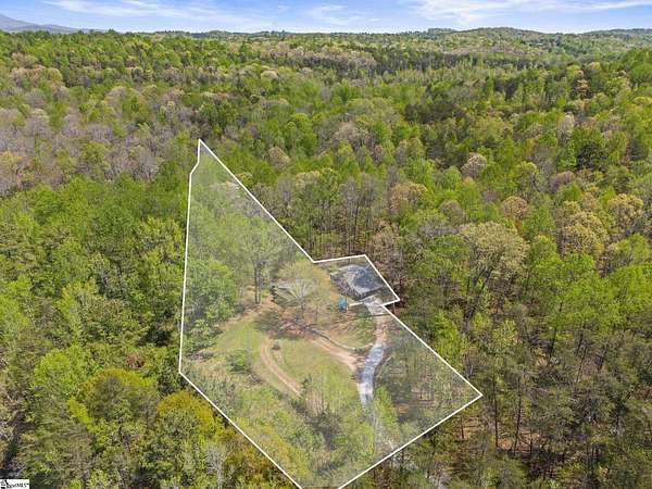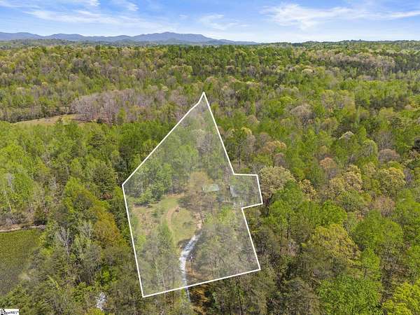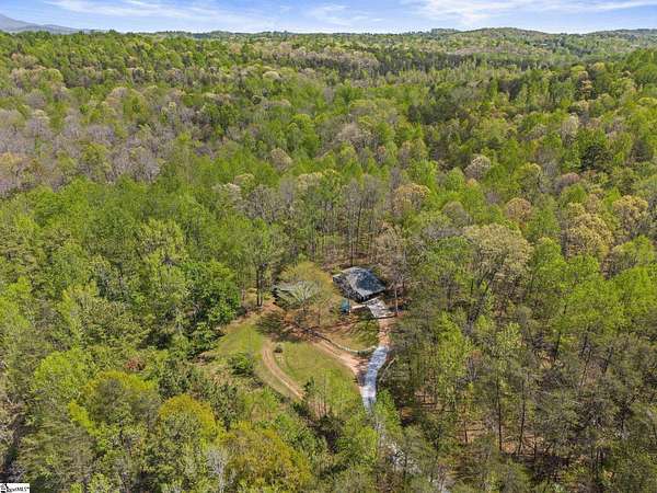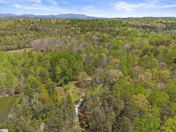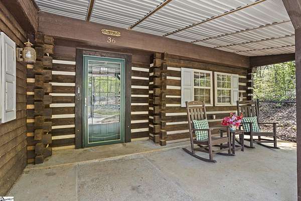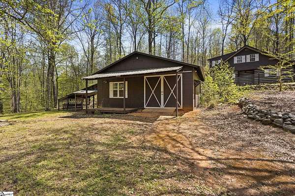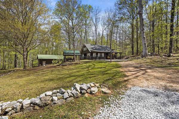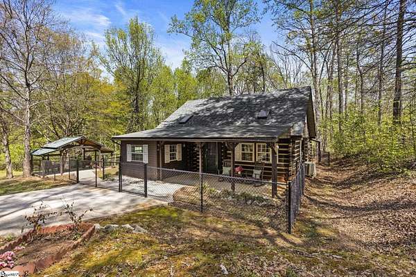 Multiple Offers. Highest and Best deadline 6pm, April 14th, 2026. Pinch yourself! Your dream property has finally come on the market! Private, peaceful unrestricted acreage just 10 minutes from thriving downtown Travelers Rest. This storybook property has it all: quaint log cabin, outdoor pavilion area, 26 x 26 workshop with electricity, a running creek, pond views and views of the mountains in the winter. This home has been dearly loved since it was built in 2000. New roof in 2023 and on city water! The bones are good and are ready for you to bring your new life and creativity into it! fun fact: this is only 1 minute from a thriving, year-round, fully booked wedding venue. The opportunity to use this as an airbnb for wedding guests should be noted!!! The long driveway is an official easement and is not part of the 2.1 acre parcel. Owner is responsible for upkeep of driveway. While inspections are welcomed, seller is selling this 'as-is' (and priced accordingly!)