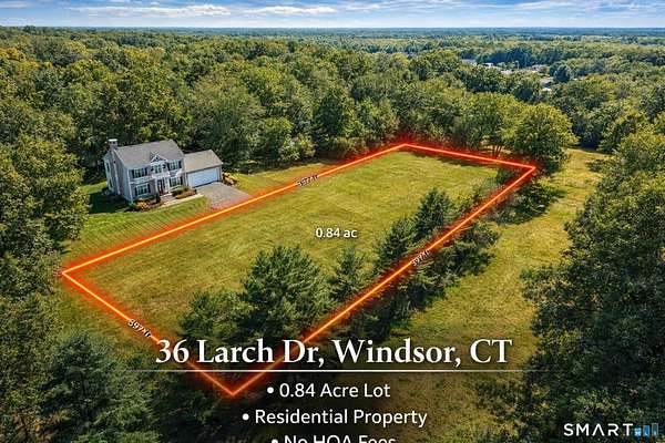 Est $201/mo0.84-acre residential lot in Windsor, CT with direct access from a municipal street and a clear, drivable unpaved road leading to the property. Approximately 100 feet of frontage. Public water, public sewer, natural gas, electric, cable, and phone available in the street. Level and buildable land in a residential zoning district (buyer to verify build requirements). Located outside FEMA flood zone per available mapping. Convenient access to I-91 and Bradley International Airport. Sale dependent upon the contract owner's ability to take title.