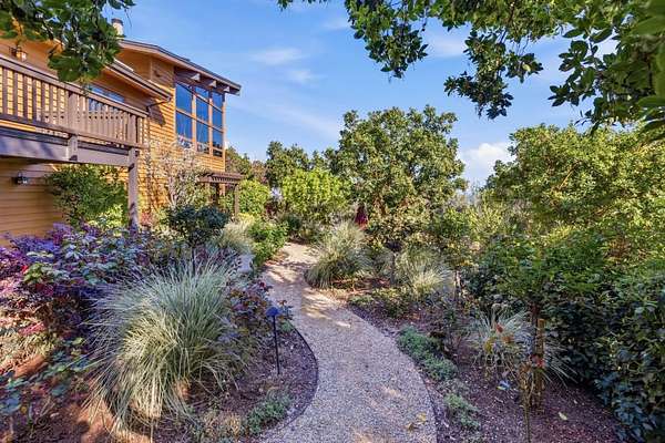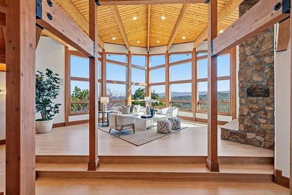 Spectacular panoramic views frame this exceptional estate, where luxury, sustainability, and complete privacy come together seamlessly. Set on 1.6 acres, the award-winning grounds feature fruit trees, rose gardens, mature native landscaping, and winding walkways that create a truly serene environment. Inside, the home captivates with an expansive open floor plan, soaring wood planked ceilings and floor to ceiling windows to showcase the spectacular views. The generous layout includes 5 bedrooms and 7 baths, highlighted by two luxurious primary suites - one on each floor, a dedicated office, and a game room designed for effortless entertaining. A 3 car garage, solar with large capacity battery generator and 2-1500 gallon water tanks complete this remarkable property creating an unparalleled retreat where elegance, comfort, and eco-conscious living meet.