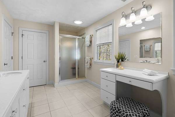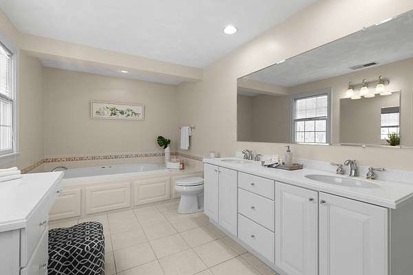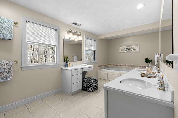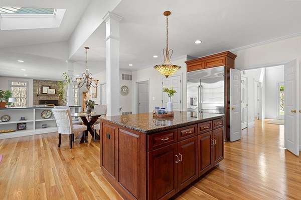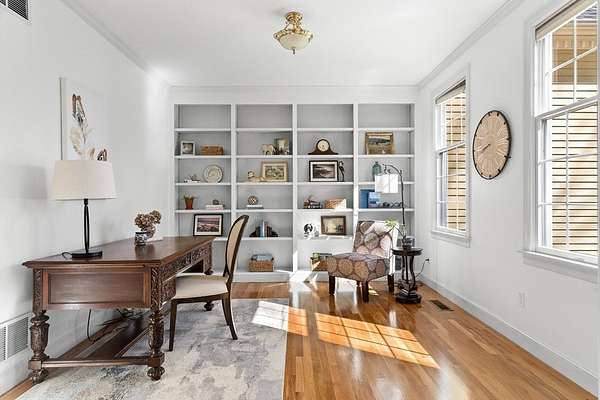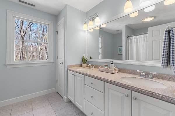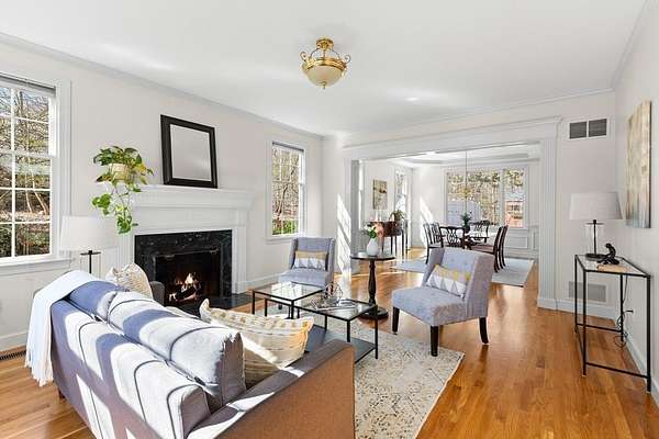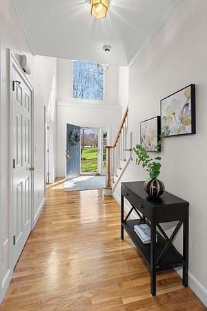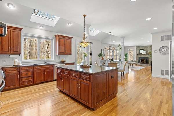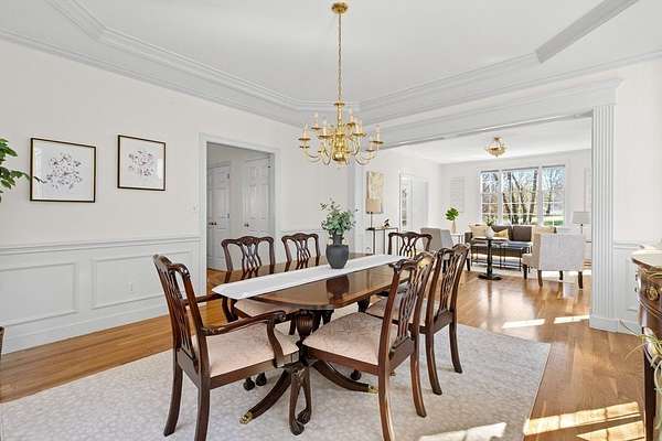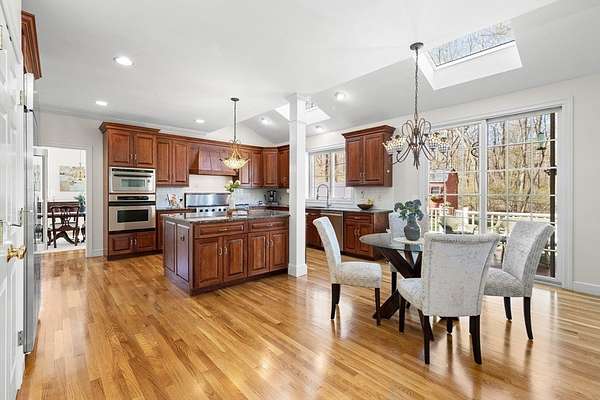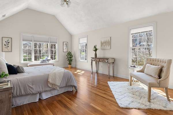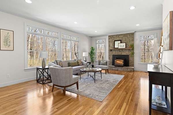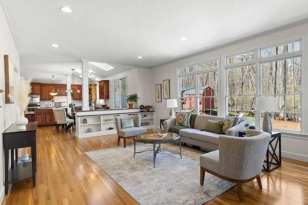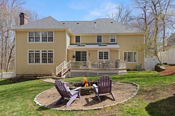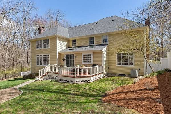 Be prepared for house envy - and for many reasons! Set on 2+ picturesque acres - it's the only house on a lovely treed cul de sac - this outstanding 12-room Colonial offers 4 bedrooms, 3 full baths (1 has radiant heated flooring), refinished hardwood flooring, freshly painted interior, & new roof for starters. Front and back staircases add convenience and charm, but don't forget showstoppers like the fireplaced living room opening to a dining room with classic wainscoting and spacious 1st floor office with built-ins & tiled mudroom. The chef's kitchen w/ a center island, dedicated pantry and eat-in area w/ sliders to a sprawling deck opens to a welcoming family room. Upstairs is an amazing great room, 2 full baths, laundry room w/ a sink and counter space plus a grand primary bedroom w/ a large custom walk-in closet and spa-like bath w/ a shower and soaking tub. There's more - the heated lower level features an oversized bonus room & home gym, and of course, you have a 3-car garage!