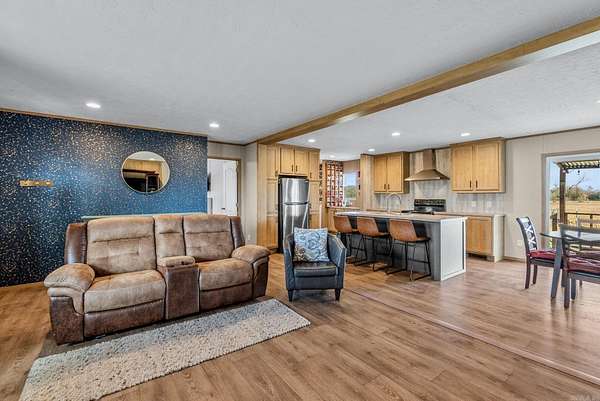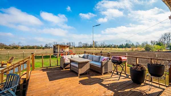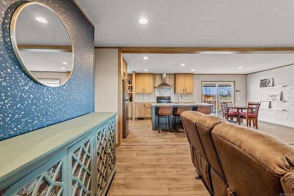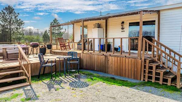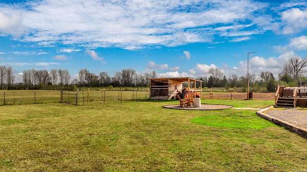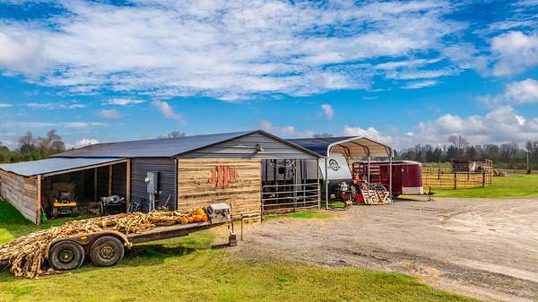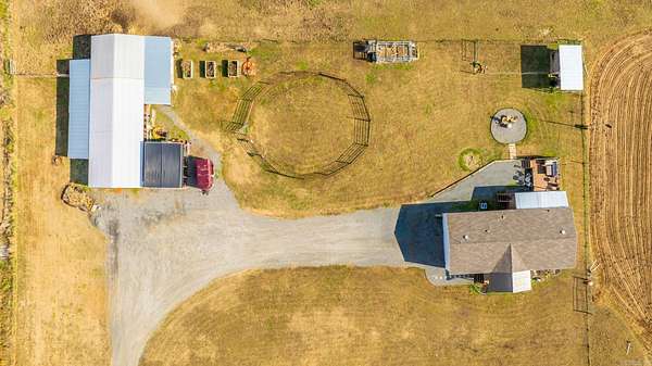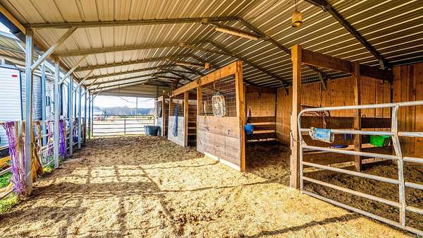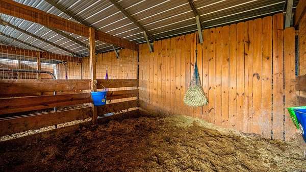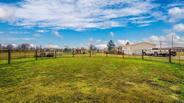 Est $1,252/moLooking for space to have horses? This property is a rare find. This almost 7-acre meticulous maintained piece of land with has a pole barn, covered RV parking, storage buildings and a practice arena with lights. Fully fenced and ready to go. Enjoy evenings on an oversized patio, deck. Back yard also features a firepit. The almost new modular home is on a permanent foundation and has an open concept with 3 bedrooms and two baths. Panels in round pen do not convey