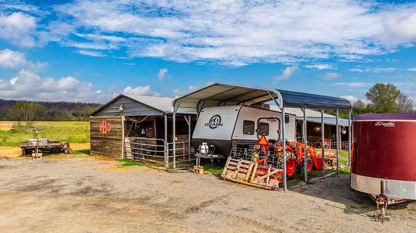 - Barns/Buildings, Covered Patio, Cross-Fenced, Fully Fenced, Livestock Allowed, Outside Storage Area, RV Parking