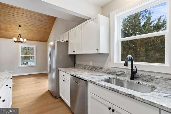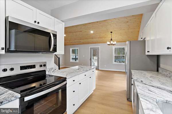 Welcome to this stunning, fully renovated four-bedroom, three-full-bath home, thoughtfully redesigned from top to bottom with quality craftsmanship and modern finishes throughout. Step inside and you'll immediately notice the breathtaking vaulted tongue-and-groove wood ceilings, adding warmth, character, and an elevated architectural feel to the main living spaces. The natural wood detail creates an inviting atmosphere while enhancing the open, airy layout-beautifully complemented by all brand-new energy-efficient windows that fill the home with natural light. The main level features two spacious en-suites, offering ideal flexibility for multigenerational living, guests, or a private home office retreat. Upstairs, two additional bedrooms share a beautifully updated full bath, creating a functional and comfortable layout for family or visitors. No detail has been overlooked. This home boasts a brand-new roof, fascia, soffit, siding, exterior doors, deck, and all new windows-providing exceptional curb appeal, efficiency, and peace of mind. Inside, you'll find an all-new kitchen with stylish cabinetry, granite countertops, stainless appliances, and updated finishes that make it the true heart of the home. Every bathroom has been completely renovated with fresh, contemporary design. Major system upgrades include an all-new plumbing system, updated electrical, and a brand-new HVAC system, delivering comfort and reliability for years to come. New luxury vinyl plank flooring flows seamlessly through the main living areas, complemented by plush new carpet in the bedrooms for added comfort. Situated on a beautiful, flat two plus-acre lot surrounded by mature hardwood trees, this property offers privacy, space, and endless possibilities-whether you envision entertaining outdoors, adding a workshop, or simply enjoying the peaceful setting. This is essentially a brand-new home on a gorgeous piece of land-move-in ready and built to impress. Book your showing today so you don't miss out tomorrow! Agent is Seller