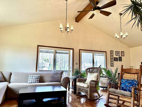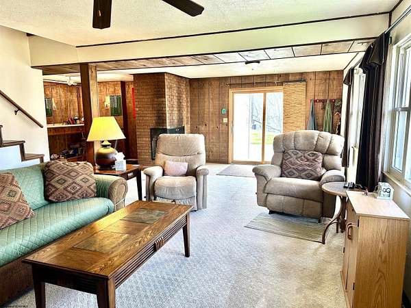 Must see to believe! See for yourself all the unique features this home has to offer. Vaulted Ceilings, Hardwood Floors, Real Fireplaces and Large Rooms make this home shine! The kitchen has already been updated with lovely cabinetry, stainless steel appliances and granite counters. This home offers loads of room for entertaining with a large gathering room, bar area and several outdoor gathering spots. Can you believe this property boasts nearly 2 acres of yard space!! Plenty of room to roam and explore! There is even a small steam at the foot of the property!This home offers plenty of storage with 2 outbuildings and a storage room in the basement. It really is a must see!