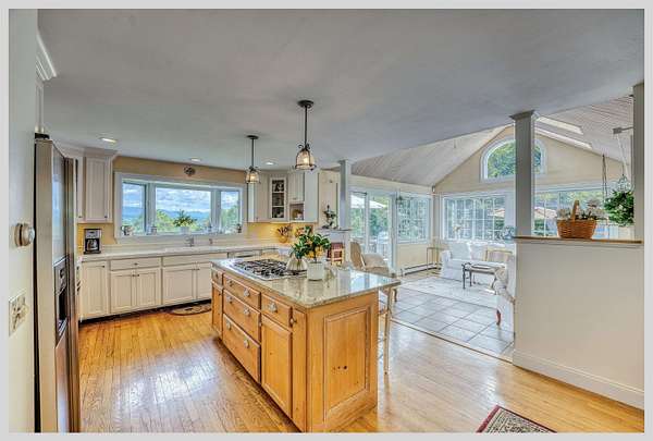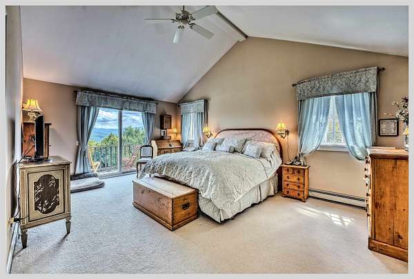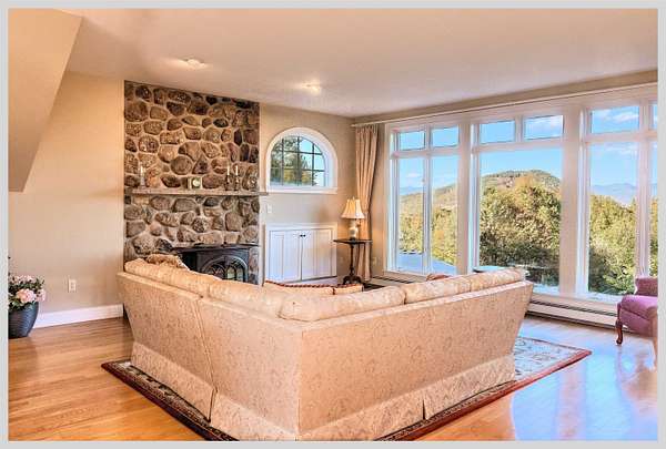 STUNNING, EXPANSIVE MOUNTAIN VIEWS -- Elegance, quality, and refinement define this exceptional home. A long, private driveway winds through beautifully maintained grounds and gardens to a welcoming entrance, with glimpses of the breathtaking mountain views beyond. Nestled on just over 2 acres at the southern foot of the White Mountains, this private retreat is minutes from four major ski resorts, hiking, golf, and boating--and just 3 1/2 miles to I-93 and under two hours to Boston. Every detail reflects superior craftsmanship and thoughtful design, creating a refined sanctuary surrounded by nature. The main living room features a striking fieldstone hearth with a Jotul woodstove and oversized windows framing sweeping vistas from Franconia Notch to Sandwich Dome. Vaulted ceilings, skylights, and expansive windows fill the home with light, while the vaulted primary suite includes a jetted tub and private balcony. The chef's kitchen, complete with granite island, Thermador cooktop, Bosch and JennAir appliances, opens to a sunroom and wraparound deck. Additional highlights include a full guest apartment, automatic generator, security system, high-speed internet, new heating system, two-car garage, and covered porches--all combining comfort, privacy, and panoramic mountain beauty in one stunning property.