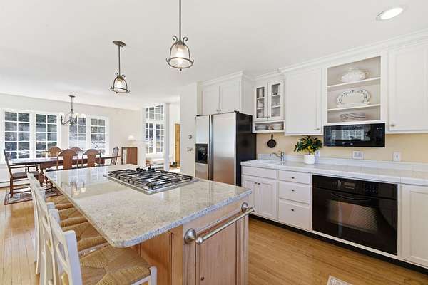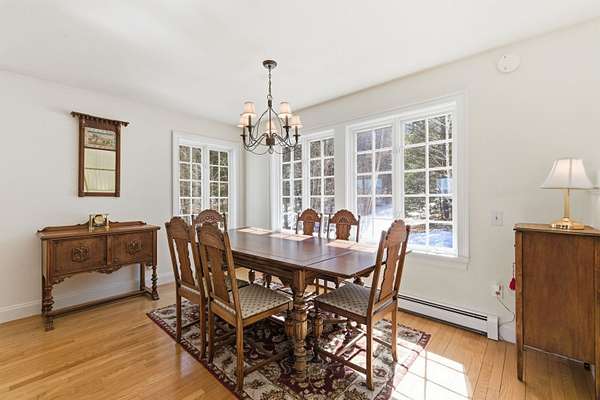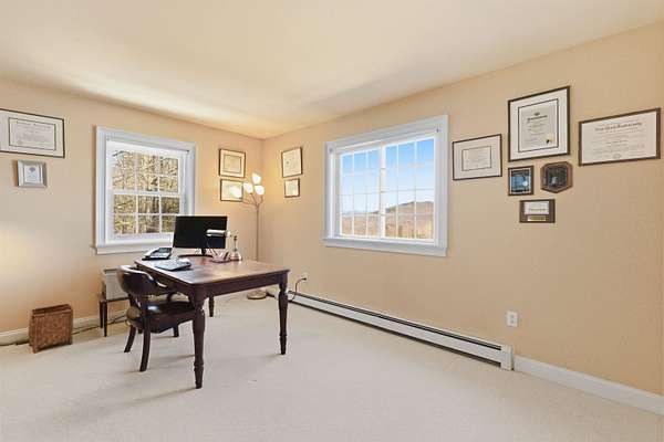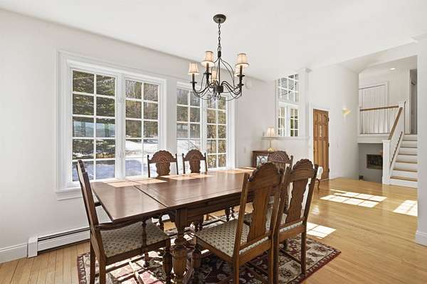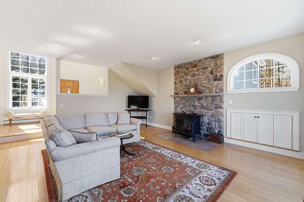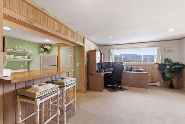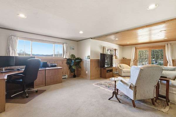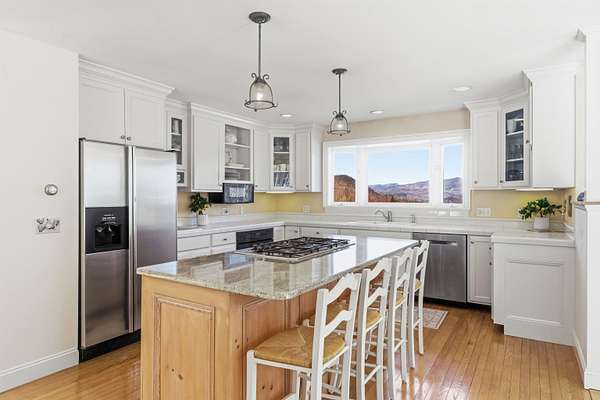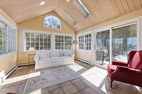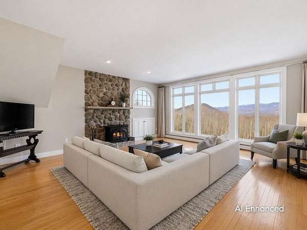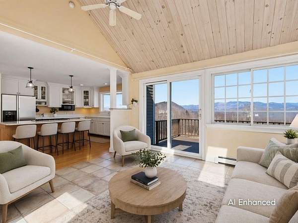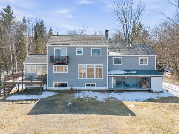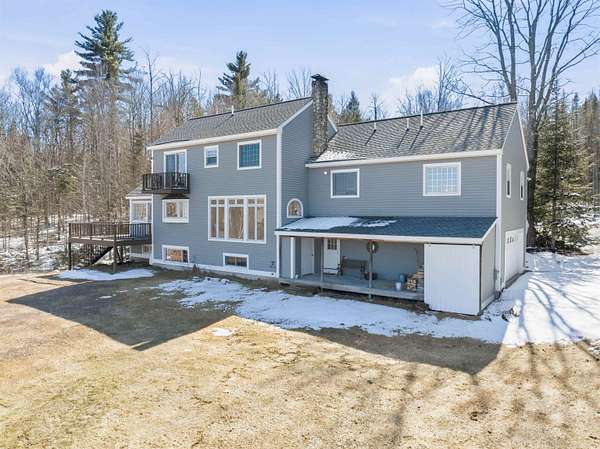 Set on 3.49 private acres, tucked away from the road, the views from this home are nothing like you’ve ever seen—stretching from Franconia Notch to the Sandwich Dome. A covered entry with a brick paver walkway & beautiful landscaping welcomes you into the main level, where a skylight foyer, vaulted ceilings, & hardwood floors set the tone. Designed to capture exceptional natural light, the home benefits from excellent solar gain. The living room features expansive picture windows that perfectly frame the mountain views, centered around a wood stove with a stone fireplace and access for loading wood from the back deck. The kitchen is well appointed, flowing into a sunroom with vaulted pine ceilings, skylights, and two sliders that open to a wraparound deck. A dining area off the kitchen completes this main space. Just a few steps up, you’ll find two bedrooms & an office that share a ¾ bath, along with a conveniently located washer & dryer. Continue up a few more steps to two en-suite bedrooms, both positioned to capture those mountain views. The guest suite includes a ¾ bath, while the primary suite features a private balcony, a large closet, & a bathroom with double vanities, a step-in tiled shower, & a jetted soaking tub. Downstairs, a mudroom provides direct entry from the two-car garage & access to another covered back deck. This level also leads to a bright in-law studio suite in the lower level, complete with a full kitchen, bar seating, a full bathroom, & a w/d. French doors open to the side yard overlooking a small pond. The gently sloping backyard offers endless potential and continue to fully enjoy the incredible panoramic views. Additional features include newly installed mini splits, a security system, generator, & new heating & hot water system. Located just 10 minutes to Owl’s Nest Golf Course, 20 minutes to Squam Lake, under 30 minutes to several of NH’s premier ski resorts, & two hours to Boston, this home offers both privacy & accessibility.