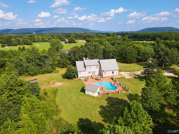 Country living city convenience. This beautiful custom-built estate is on the market for the 1st time ever. Located just minutes to the arsenal and all the shopping and restaurants in south Huntsville It features 3 bedrooms, 2 full baths and 2 half baths, a large bonus room, over sized laundry room and pantry combo and a open floor concept. Beautiful cathedral style wood lined ceilings and gorgeous rocked gas fireplace. Sitting on 12+ acres. Entertain guests out by the pool with a pool house or enjoy sunsets from either the upper porch balcony or your coffee on the front porch over looking the large pond with a beautiful concrete pier. Mobile homes being moved. Additional acreage available.