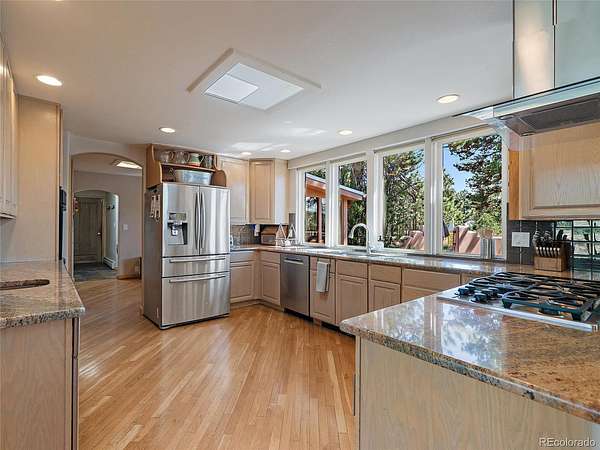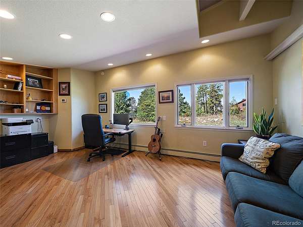 Just outside Mount Vernon Country Club with no HOA, 36 S Mt. Vernon Country Club Rd offers almost 3 acres of flat usable land, Continental Divide and Mount Blue Sky views, a 4-bedroom, 3-bath layout, and a huge detached workshop/garage with potential ADU or barn conversion. With 3,696 finished square feet, a large detached workshop, two sheds and a septic system designed for 5 bedrooms, this property offers exceptional flexibility, room to expand, and long-term upside. New carpet throughout, new trim paint in 2026, a new metal roof, new skylights, and a new high-impact shingle roof on the detached workshop in 2025 add immediate appeal and meaningful value. Inside, the open floor plan is complemented by a formal dining room, main-floor office that could support future reconfiguration, a sun room with an infrared sauna, remote-control blinds in the great room, and an upstairs primary suite with a huge walk-in closet. The kitchen features a peninsula, and the home’s layout creates comfortable everyday living with plenty of room to grow. Outdoor living is a standout, with multiple outdoor living spaces including a new flagstone patio for sunset views, a private courtyard oasis with a water feature, an updated deck area near the tree house, a greenhouse with a fenced garden, and a huge flat yard for play and sports. The detached heated garage/workshop adds even more versatility for storage, vehicles, hobbies, projects, business use. Located less than 0.25 mile from Ralston Elementary and with easy access to Beaver Brook Canyon, Genesee Mountain and Gudy Gaskill trails, the I-70 bike path, Genesee shops and restaurants, and nearby open space, this property offers a rare blend of mountain living and everyday convenience. Quick access to I-70 makes it easy to reach shopping in 5 minutes, downtown Denver in about 20 minutes, and Summit County skiing in about 35 minutes.