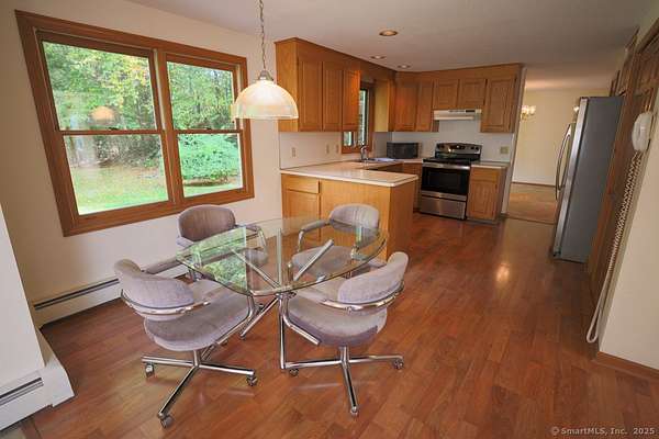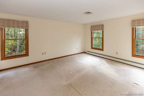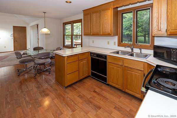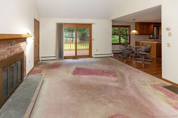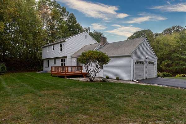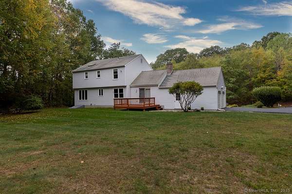Privately set on over 2.5 acres with mature landscaping, this home offers comfort and convenience. The family room features a cathedral ceiling and fireplace, while the eat-in kitchen flows into an open floor plan with skylights and access to a large deck overlooking the private backyard. The primary suite includes a private bath and walk-in closet. Additional highlights include central air, generator hook-up, security system, newer furnace, and newer well pump. In very good condition, just needs new carpet or wood flooring to make it your own. OFFER DEADLINES DUE WEDNESDAY OCT 29 BY 5PM