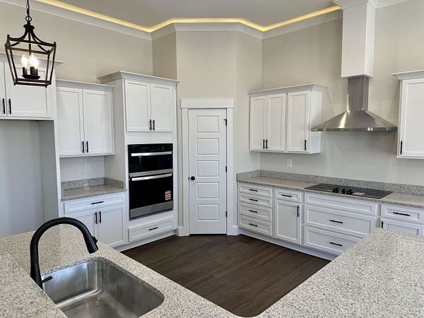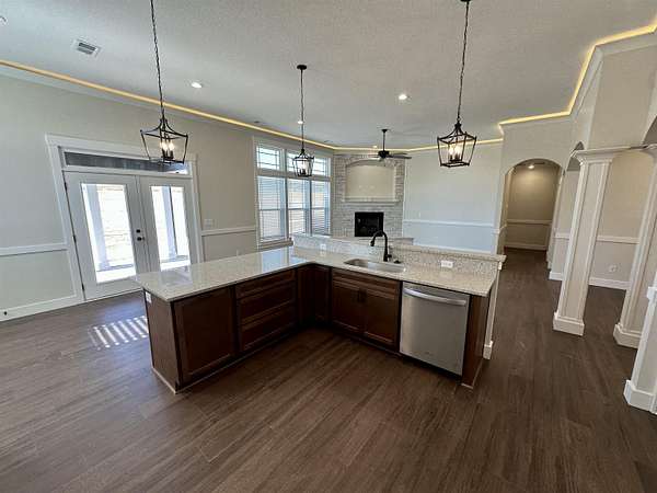 - Ceiling Fan, Ceilings-Some 9 FT +, Ceilings-Trey, Closet/Cabinet Pantry, Countertops-Solid Surface, Fireplace, Garden Tub, Gas Logs, Open Floor Plan, Smoke Detector, Split Bedroom Plan, Utility Sink, Walk in Closet