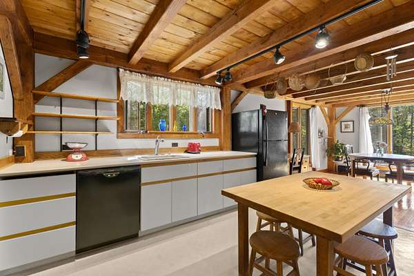 Tucked away behind association common land, this year-round compound offers the perfect blend of privacy, space, and flexibility. The post-and-beam main house features four bedrooms and combines timeless character with functional design, ideal for everyday living or seasonal enjoyment. A separate two-bedroom guest house with a welcoming farmer's porch is thoughtfully sited to ensure privacy and independence, complete with its own driveway and parking. The detached garage, with a loft above, adds even more versatility-ideal for storage or future finished space. Situated on one of the largest parcels in the Smith Hollow Association, the property enjoys a tranquil, park-like setting. With direct access to the bike path at the end of the road, you're just minutes from Edgartown and all down-island amenities. More than just a house-this is a place to call home.
