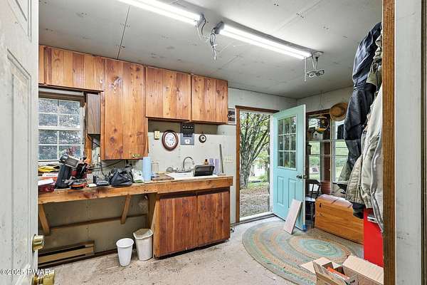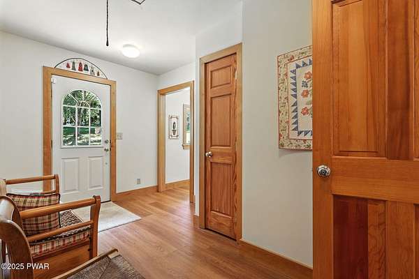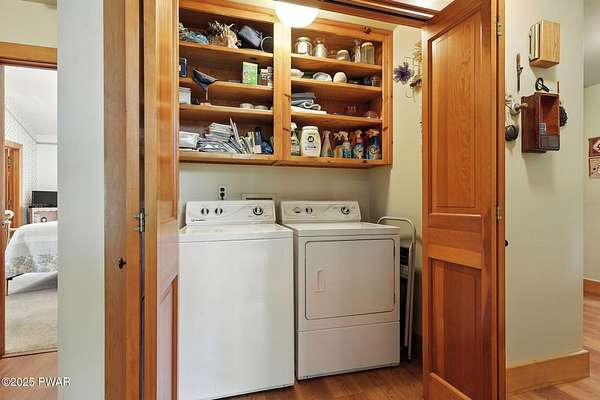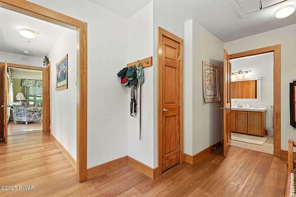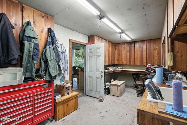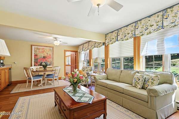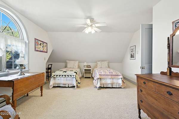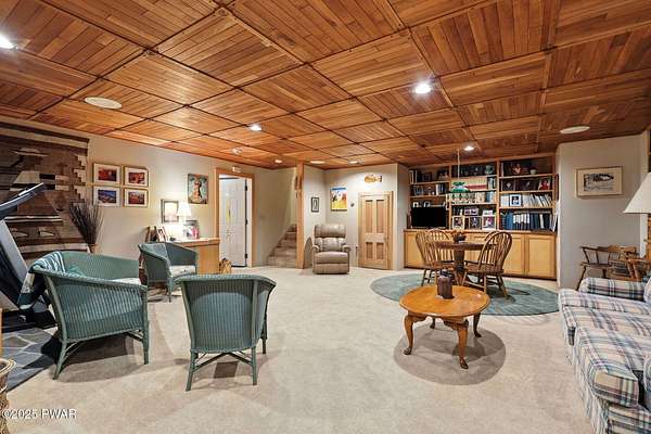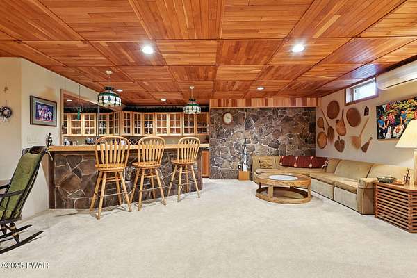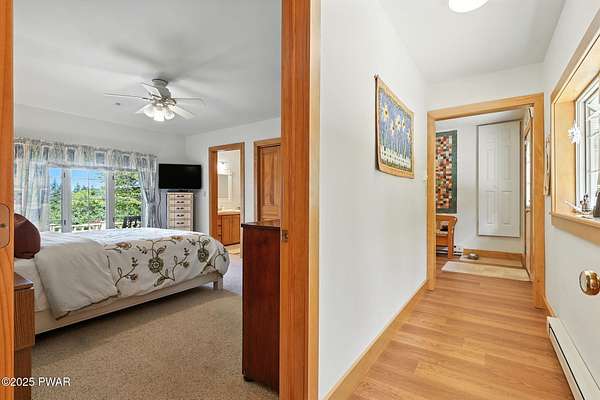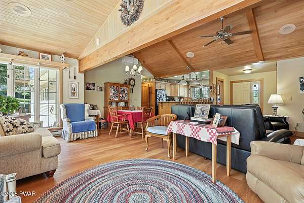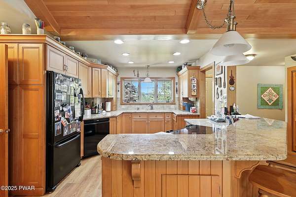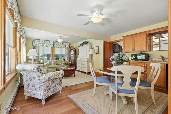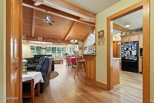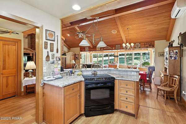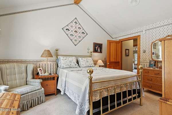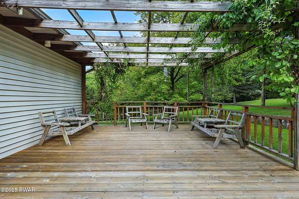 A one-of-a-kind 67-acre private country estate just 15 minutes to Honesdale and 25 minutes to Elk Mountain, this remarkable property features 6 bedrooms, 4 bathrooms, multiple living areas, and exceptional outbuildings, all surrounded by breathtaking scenery. The paved quarter-mile driveway winds through rolling fields, fruit trees, and miles of historic stone walls, leading to a striking stone-and-vinyl residence carefully maintained by the same family for years. Step inside to bright living spaces filled with natural light and countryside views. A brick wood-burning fireplace anchors the expansive main living area, where the open kitchen, dining room, and sunroom connect seamlessly. The kitchen offers granite countertops and quality cabinetry, while the sunroom's walls of windows frame the serene landscape. The main-level primary suite is a retreat with vaulted ceiling, spa-like bath featuring a jacuzzi tub with views, walk-in shower, and spacious walk-in closet. Two additional bedrooms, a tiled full bath, and convenient laundry complete this wing. The finished lower level impresses with a sprawling family room accented by stonework and a bar, built-in cabinetry, an office/craft room with refrigerator, abundant storage, and a workshop. A highlight of this estate is the separate living quarters, with its own entrance, primary suite, full bath, office, generous living/dining area with kitchenette, plus two more bedrooms and another full bath upstairs--perfect for extended family, guests, or an in-law setup. Outdoors, relax on the expansive deck and porch while overlooking rolling acreage, miles of stone walls, and extensive stream frontage for fishing, swimming, and recreation. Outbuildings include a 30x40 insulated workshop with wood burner, a 40x40 storage barn, and a detached stone-front garage with stove and workspace. This extraordinary property offers unmatched privacy, beauty, and timeless character--an estate of this scale and setting is truly rare.