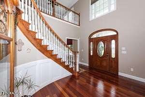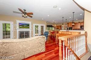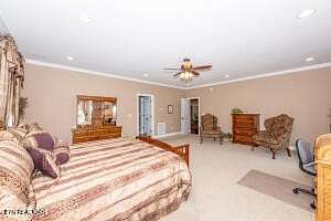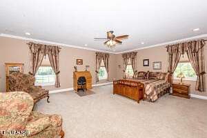 First time offered on the market! Perfect for someone wanting a mini farm, family compound, build spec homes, etc. This listing includes the house on a 8.14 acres and THREE additional lots totaling 12.43 acres total. This custom-built, Executive home is nestled on a private, unrestricted 12.43 acre estate with breathtaking mountain views. This all-brick, two-story masterpiece boasts timeless craftsmanship and modern amenities, providing the perfect balance of luxury, comfort, and functionality. With no restrictions, this home offers a unique opportunity for privacy and versatility. The moment you step inside, you'll be captivated by the open floor plan and Brazilian cherry hardwood floors that flow seamlessly throughout. The spacious living areas with an open floor plan provides a warm, inviting atmosphere, ideal for both family living and entertaining. The living room features a gas fireplace, creating a cozy ambiance, while the kitchen is a chef's dream, offering walnut cabinets, a built-in desk, quartz countertops, a pantry, and black appliances. The main level includes a private office, perfect for remote work or study, as well as a well-appointed laundry room complete with a built-in ironing board, sink, and tile floors. A half bath on the main ensures added convenience for guests. The huge primary bedroom is a true retreat, featuring two walk-in closets and a luxurious en suite bath with double vanities, a jetted tub, a walk-in tile shower, and a separate water closet. A linen closet and tile flooring complete this serene sanctuary. Upstairs, you'll find a loft area and three additional bedrooms, each with ample closet space. Two of the bedrooms share a Jack & Jill bathroom, while the fourth bedroom has its own en suite bath, bonus room, and walk-in storage. The basement is a true standout, with 9-foot ceilings and dedicated spaces for entertainment and relaxation. Enjoy movie nights in the theater room, complete with a 100-inch screen, projector, and raised seating. There's also a large rec room, a workout room or guest room, and a fourth full bath, providing endless possibilities for leisure and recreation. The walk-in storage is a perfect place to store all your holiday decorations, keepsakes, etc. This home is also equipped with a 12-zone A/C Bryant system with hybrid heat, ensuring year-round comfort, and a home automation system that makes it a smart home. The property features a 6-car garage with an additional workshop area, a detached 2-car garage, and plenty of room for all your toys, including space long enough for a boat. A 1000-gallon buried propane tank and a generator provide peace of mind for years to come. Enjoy the outdoors in the beautifully landscaped yard, with a screened porch featuring a tongue-and-groove ceiling and a Trex grilling deck. The property is also equipped with a well for irrigation, ensuring your garden and lawn thrive year-round at little costs. With a total of 5249 sq. ft. of finished living space, this incredible home offers ample room for every need, combining luxury, convenience, and privacy. The seller thought of everything! Schedule your private tour today and experience this one-of-a-kind property for yourself.