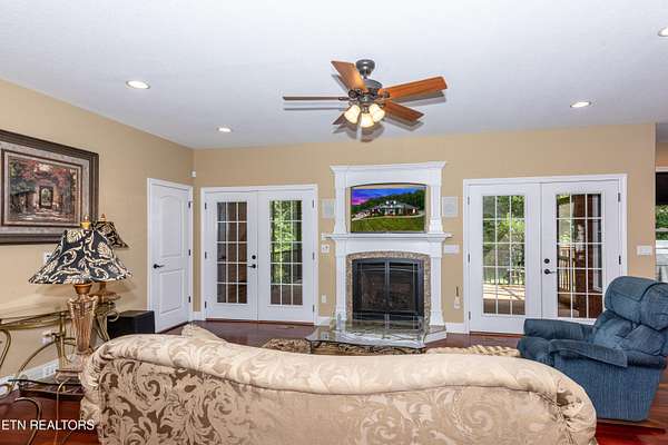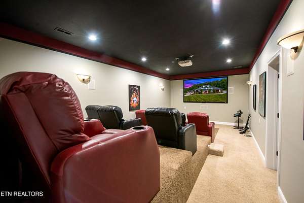 First time offered on the market! Welcome to this custom-built, Executive home, nestled on a private, unrestricted 8.14-acre estate with breathtaking mountain views. This all-brick, two-story masterpiece boasts timeless craftsmanship and modern amenities, providing the perfect balance of luxury, comfort, and functionality. With no restrictions, this home offers a unique opportunity for privacy and versatility. The moment you step inside, you'll be captivated by the open floor plan and Brazilian cherry hardwood floors that flow seamlessly throughout. The spacious living areas with an open floor plan provides a warm, inviting atmosphere, ideal for both family living and entertaining. The living room features a gas fireplace, creating a cozy ambiance, while the kitchen is a chef's dream, offering walnut cabinets, a built-in desk, quartz countertops, a pantry, and black appliances. The main level includes a private office, perfect for remote work or study, as well as a well-appointed laundry room complete with a built-in ironing board, sink, and tile floors. A half bath on the main ensures added convenience for guests. The huge primary bedroom is a true retreat, featuring two walk-in closets and a luxurious en suite bath with double vanities, a jetted tub, a walk-in tile shower, and a separate water closet. A linen closet and tile flooring complete this serene sanctuary. Upstairs, you'll find a loft area and three additional bedrooms, each with ample closet space. Two of the bedrooms share a Jack & Jill bathroom, while the fourth bedroom has its own en suite bath, bonus room, and walk-in storage. The basement is a true standout, with 9-foot ceilings and dedicated spaces for entertainment and relaxation. Enjoy movie nights in the theater room, complete with a 100-inch screen, projector, and raised seating. There's also a large rec room, a workout room or guest room, and a fourth full bath, providing endless possibilities for leisure and recreation. The walk-in storage is a perfect place to store all your holiday decorations, keepsakes, etc. This home is also equipped with a 12-zone A/C Bryant system with hybrid heat, ensuring year-round comfort, and a home automation system that makes it a smart home. The property features a 6-car garage with an additional workshop area, a detached 2-car garage, and plenty of room for all your toys, including space long enough for a boat. A 1000-gallon buried propane tank and a generator provide peace of mind for years to come. Enjoy the outdoors in the beautifully landscaped yard, with a screened porch featuring a tongue-and-groove ceiling and a Trex grilling deck. The property is also equipped with a well for irrigation, ensuring your garden and lawn thrive year-round at little costs. With a total of 5249 sq. ft. of finished living space, this incredible home offers ample room for every need, combining luxury, convenience, and privacy. The seller thought of everything! Schedule your private tour today and experience this one-of-a-kind property for yourself.
