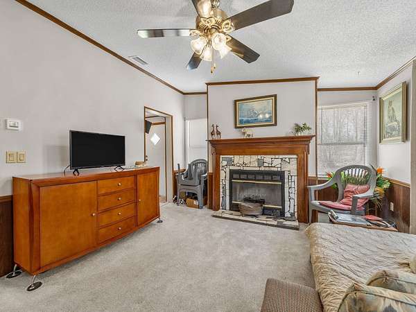 - Cable Available, Ceiling Fan, Ceilings-Blown, Countertops-Laminate, Fireplace, Gas Logs, Smoke Detector, Walk in Closet, Window TRTMNTS-All Remain