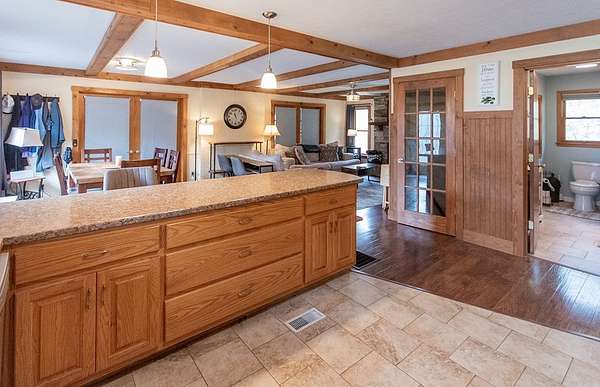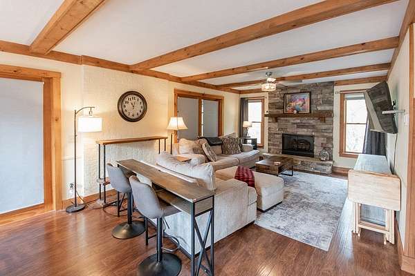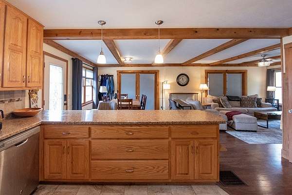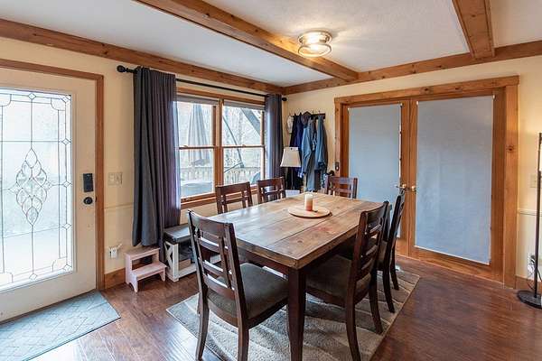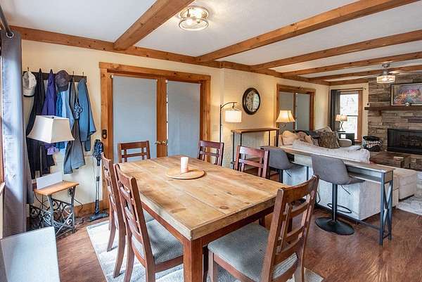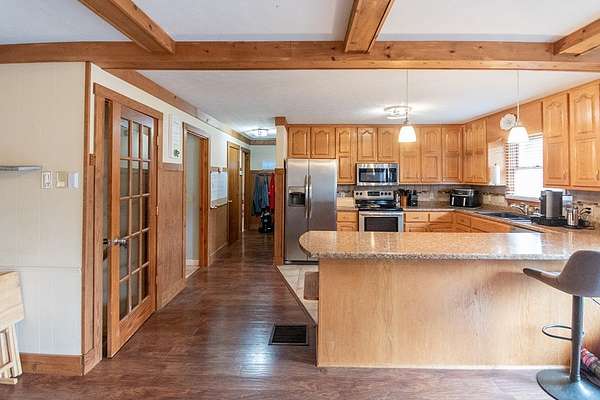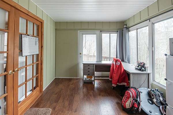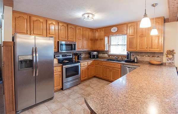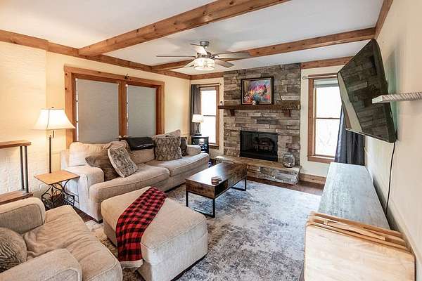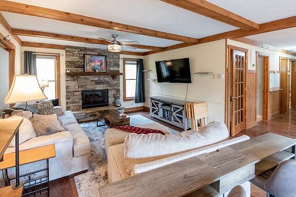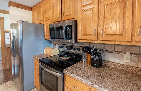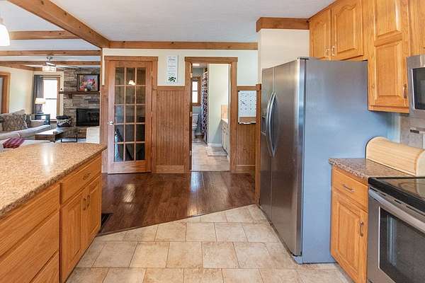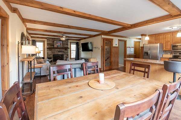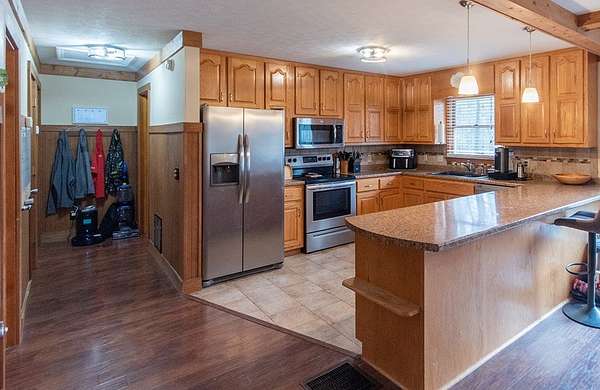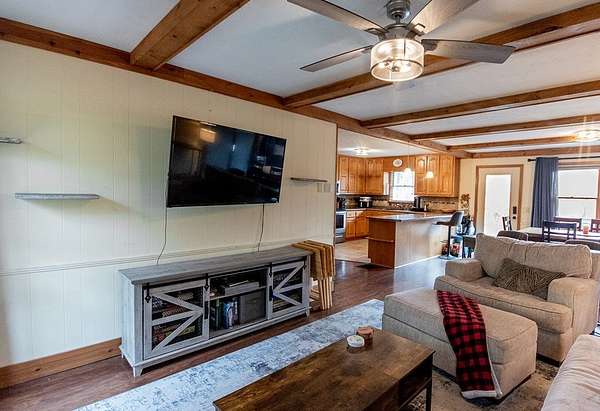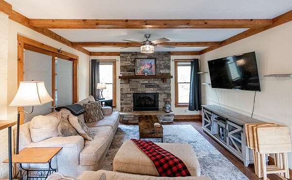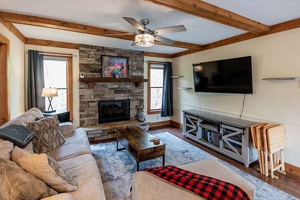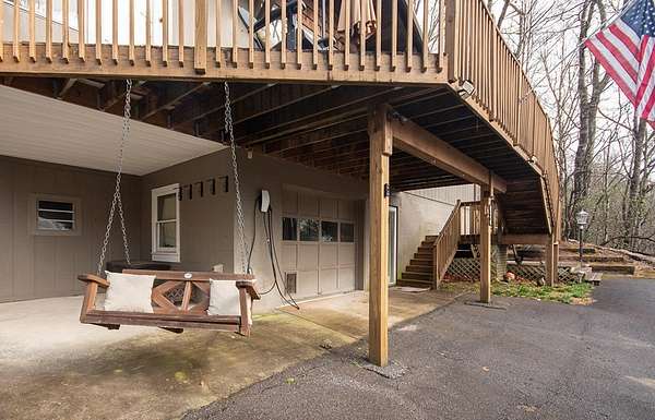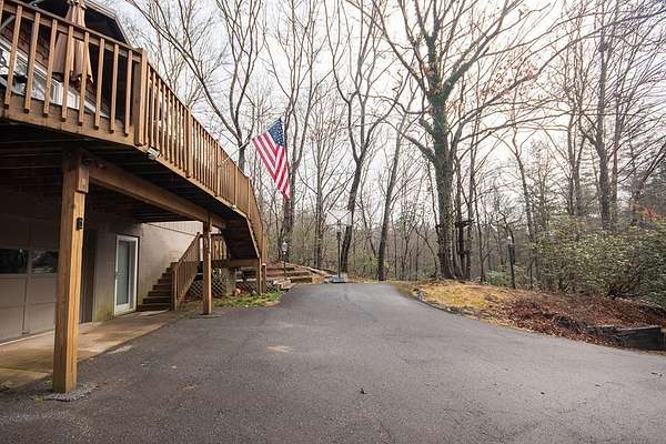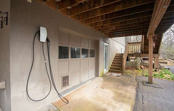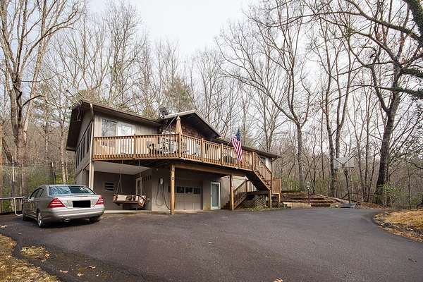 Mountain Lovers Dream! Beautiful mountain home with full southern exposure and end-of-road privacy. Enjoy a low-maintenance yard, paved parking/driveway, metal roof, and powered workshop. Features an electric charging station and a large front deck, perfect for family gatherings or entertaining guests. This 3-bedroom, 3-bath home includes a spacious sunroom currently used as a bedroom. The large living room boasts gas logs and a rock fireplace. The open kitchen/dining room comes with appliances. The lower level has a Mother-In-Law Suite with a bedroom, bathroom, kitchen, and living room. A large single-car garage in the basement is currently used as a home gym. The home features 2-zone central heating and air. Ideal as a perfect vacation getaway or a private local residence.