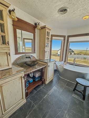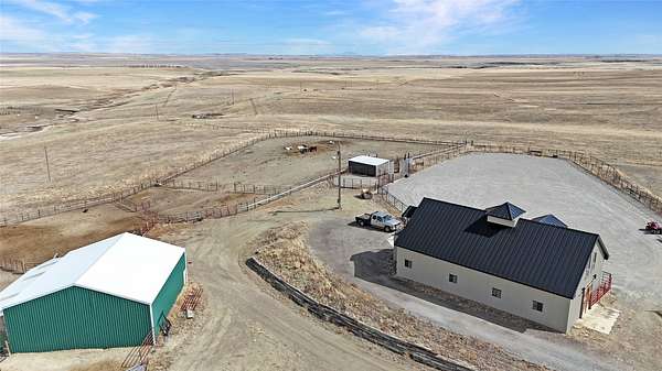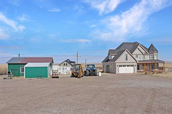 The quintessential Montana horse property offering 40 flat and usable acres, barn and outbuildings, corrals, views of Rocky Mountain Front & Sweet Grass Hills, a custom built home and a detached 1,500 sq ft detached apartment. The main home was constructed in 2006 and offers 4 bedrooms 3 bathrooms with high finishes throughout. The primary bedroom features a large walk-in closet, tiled shower & soaking tub. Relax in the sunroom with wall to wall windows and sky lights plus a gas stove for the colder days. Additional features include a wood burning fireplace, hardwood floors, granite counter tops, custom cabinets, covered porch & patio, and outdoor fire pit. Additional garage and outbuildings on site. The fully finished 1 bedroom 1 bathroom apartment offers a modern kitchen, large living room, gas fireplace, and huge bathroom with a soaking tub and shower. The barn has 6 stalls and 2 storage areas with a garage door opening to the corral. The remainder of the property is fully fenced. 15 minutes to town (Cut Bank) and 40 mins to Glacier Park.