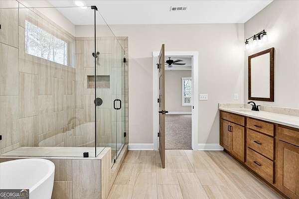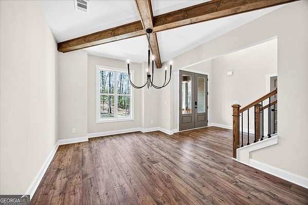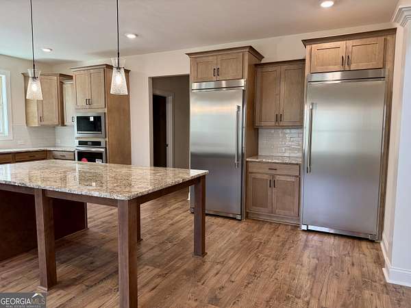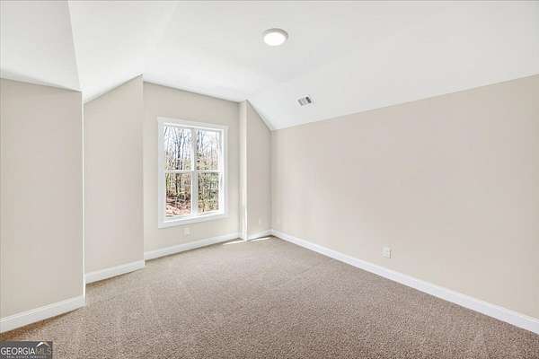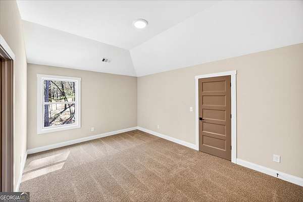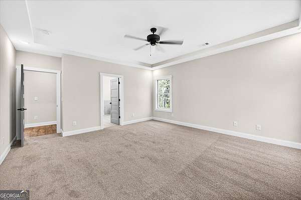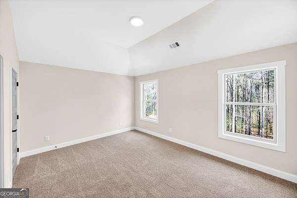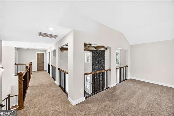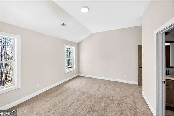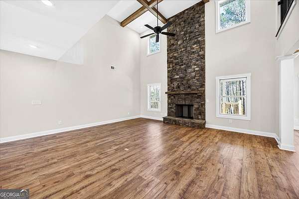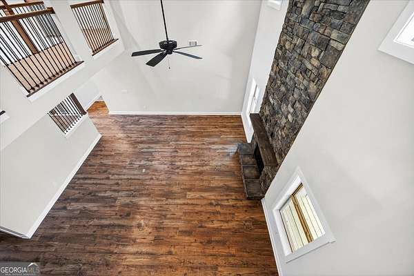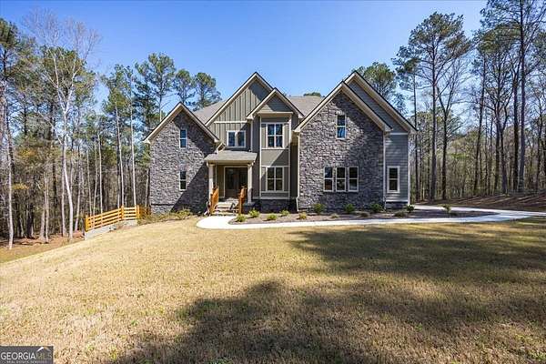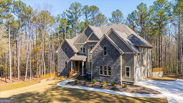 CUL-DE-SAC LOT WITH PRIVATE FLINT RIVER ACCESS! Pike County - "The Shoals," Immaculate 2025 custom home situated on 2.28 acres with approximately 80 feet of river frontage. This home features 4 bedrooms plus a dedicated office (optional 5th bedroom), 3.5 baths, and an upstairs recreation/living area. The home welcomes you with an 8' double door entry into a two-story foyer, formal dining room with coffered ceiling, and an impressive two-story living room with stained coffered ceiling and wood-burning fireplace with floor-to-ceiling stone surround. The open kitchen is designed for both function and style, offering granite countertops, designer tile backsplash, glass pendant lighting, a large island, stainless steel appliances, pot filler, and custom cabinetry with a column refrigerator and freezer. Breakfast area with vaulted with tongue-and-groove ceiling opens to a covered rear porch. The main-level owner's suite features a trey ceiling, private bath with quartz countertops, tile flooring, tiled shower, freestanding tub, and private water closet. A spacious laundry room is also located on the main floor. Upstairs includes a large open living area for recreation or relaxation, three additional bedrooms, two full baths with tile flooring and quartz countertops, and a private office that may also function as a fifth bedroom. The full unfinished basement offers excellent expansion potential, with 400-amp service to this home and partial electrical and plumbing already installed in the basement. Basement opens to a lower-level patio featuring a wood-burning fireplace, creating an ideal outdoor living and entertaining space. Don't wait come take a look today!