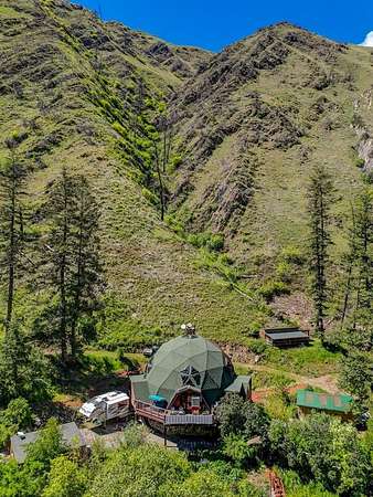 Rare off-grid geodesic dome in a stunning Idaho mountain canyon.Year-round creek flows through the 40 acres of private property for serene beauty and water access. Nestled near the famous Salmon River, enjoy world-class fishing, hunting, and rafting minutes away. Complete energy freedom includes a dual 48v-220v inverter system with solar panels charging 24 deep-cycle batteries, automatically backed up by diesel & propane generators. Comfortable, spacious interior with wood stove, hydronic heat, ceiling fan, evaporative cooler, reverse filtration water filter system, custom built-ins & quality appliances. Step onto the large deck for breathtaking views and deep immersion in nature. Multiple garden areas, fruit trees and berries all around, plus an underground root/wine cellar perfect for self-reliant living. Outbuildings include space for tools, storage, livestock, chickens, etc. Also included: A Bobcat ToolCat 9600 w/several attachments. Property is priced well below market value for quick sale! Seize this sustainable, self-reliant paradise in one of Idaho's most pristine locations! Don't miss this unique opportunity to live freely and peacefully in quiet harmony with the land.