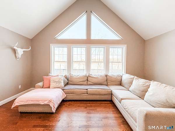 Located in a highly desirable, idyllic, and relaxing setting, this 2019-built, single-owner home has been meticulously maintained and remains in pristine condition. Designed for easy one-level ranch living, the entire home is thoughtfully laid out on a single floor. The open living space features dramatic vaulted ceilings accented by expansive A-frame-style windows, flooding the home with natural light and creating a bright, airy atmosphere. Overlooking your beautiful scenery The home offers a primary suite along with two additional bedrooms, and second full bathroom, providing comfort and flexibility for a variety of needs. Set on a private 2.2-acre lot, the property offers both space and serenity while still enjoying modern conveniences such as central air conditioning. This is a rare opportunity to own a newer home that combines peaceful surroundings, quality construction, and effortless living!