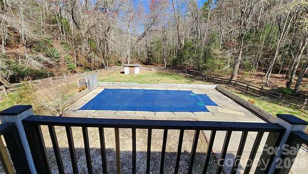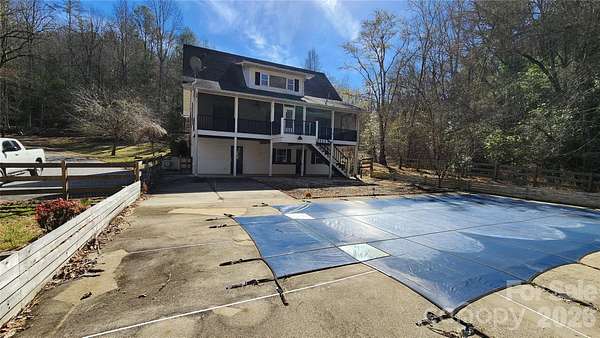 PRICE REDUCED on this Beautiful Home on just under four acres of big yard and woods with peace and quiet close to historic small town of Hayesville and 7000 acre recreational Lake Chatuge. Not far from Nantahala National Forest. Property owners have access and community viewing area at the lovely, wide Hiwassee River which fronts this subdivision. Spacious home on the hillside with lovely in ground pool in large fenced in back yard, two gentle creeks meandering through yard, full length covered deck overlooking pool and wooded glen. Ample kitchen on main floor with attractive cabinets and granite tops. Separate laundry room has cabinets and pantry storage. Big great room and primary bedroom opens to covered deck. Primary bedroom has large closet, spacious bath with jetted tub, separate shower and double vanity. Upstairs are two bedrooms, full bath and bonus room. Downstairs is single garage, oversized den and a separate snack kitchen with cabinets, countertop, sink for poolside snacking by the patio or big screen TV game nights in the den. 3000+/- Sq.Ft. under roof. Relax and listen to the calming sounds of creeks and birds or smile at kids splashing in the pool. Walkable neighborhood is low traffic, dead end residential street. This is your haven from the hustle and bustle of hectic life. SOLD AS IS. If property was built prior to 1978, lead based paint potentially exists. Possible Seller Financing to qualified buyers - not guaranteed.