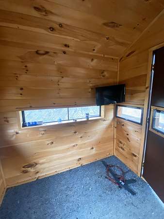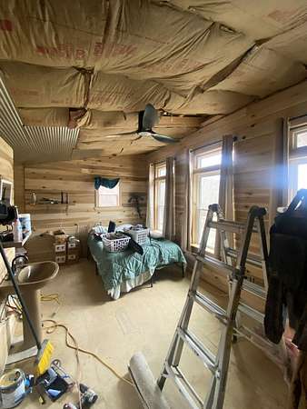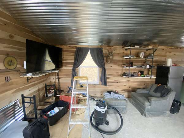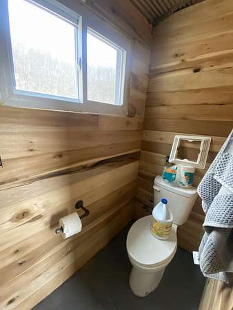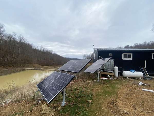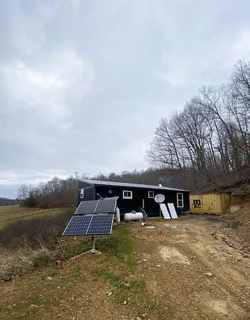 Escape to your own private wilderness with this one-of-a-kind 560 sq ft off-grid cabin nestled on approximately 14.2 acres of diverse terrain. Designed with sustainability and self-reliance in mind, this rustic getaway is nearly complete - just waiting for your finishing touches to bring it across the finish line. Inside, the cabin features warm, poplar tongue-and-groove walls and trim, fully insulated for year-round comfort. A sun-tracking solar panel system powers the essentials, while propane is available for the stove, water heater, and other off-grid utilities. A wood stove in the main living area provides efficient, cozy heat through the colder months, while a mini-split system offers additional heating and cooling to keep the interior comfortable in all seasons. A 275-gallon cistern collects rainwater for your water supply. Step outside and explore the land: two serene ponds, multiple ATV trails carved through the landscape, and an abundance of wildlife make this a true hunter's paradise. Deer, turkey, and other game are plentiful, offering excellent opportunities for outdoor sportsmen. Tucked into the hillside, a steel shipping container provides added storage and doubles as a secure storm shelter or emergency bunker. Whether you're looking for a hunting cabin, weekend getaway, or a head start on full-time off-grid living, the hard work has already been done - thoughtfully planned infrastructure, natural resources, and endless potential await.